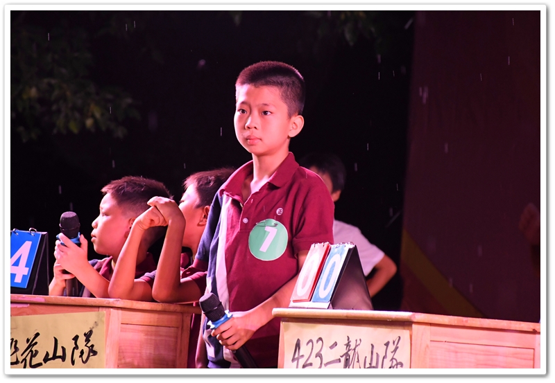当晚7点30分,气势磅礴的开场舞点燃了现场气氛。随后,盛装登台的两位小主持人以标准的播音腔宣布竞赛正式开始。各代表队踏着激昂的鼓点依次登场,他们以独特的气质和响亮的口号进行自我介绍,瞬间点燃了现场观众对智慧交锋的期待,宛如水浒英雄跨越时空,在校园赛场风云再聚。