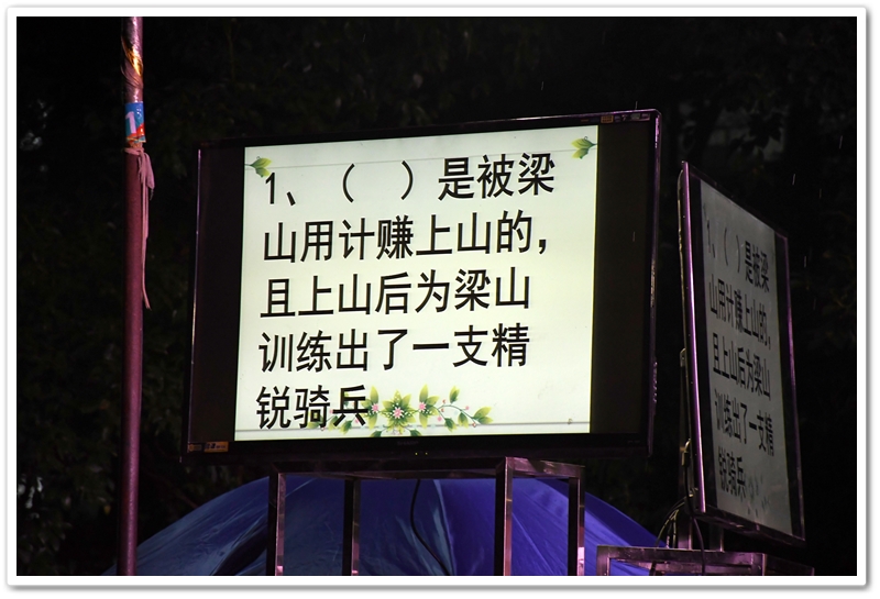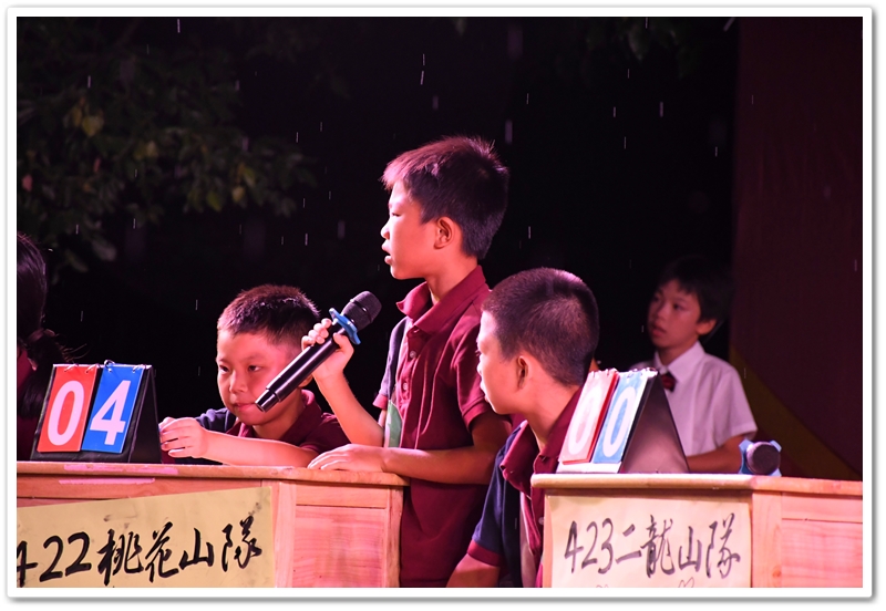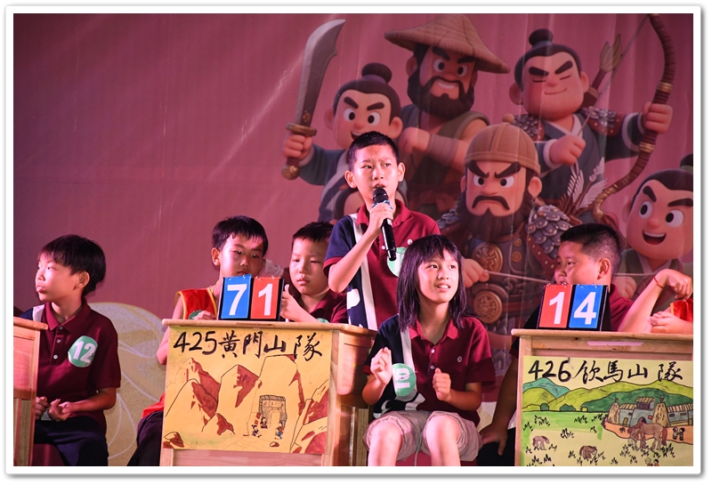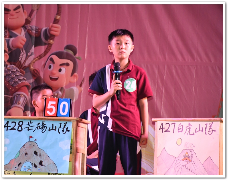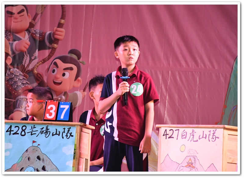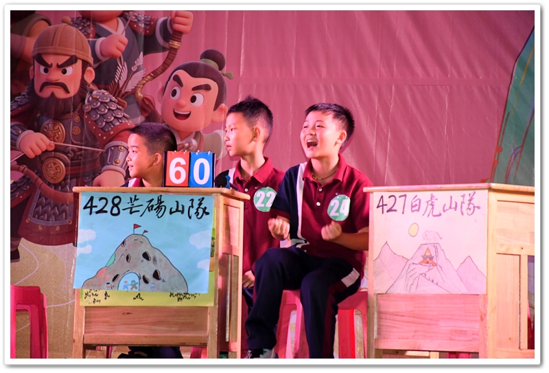 经过初赛(全年级参与)的选拔,24位来自各班前三名的优秀选手脱颖而出,组成8支班级代表队。比赛采用团队积分淘汰制,分三个环节展开:① 三打祝家庄(基础知识) ② 大破连环马(人物关系) ③ 四大征(综合思辨)。