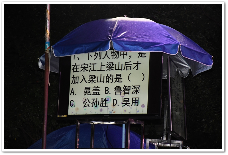 紧张角逐后,晋级队伍稍作休息。台下观众互动答题环节随即开启,同学们凭借对水浒人物的熟稔积极抢答赢取奖品,趣味互动将现场气氛推向又一个高潮。