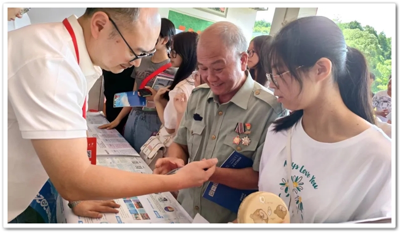 在这热火朝天的招生咨询现场,一位身着泛黄老军装、胸前佩戴着对越自卫反击战功勋章的六十多岁老人格外引人注目。老人名叫黄昊军,是正源学校食堂炒菜师傅,已在这里辛勤工作了7 年。此次,他专程替正在广东打暑假工的孙女黄雪怡咨询高考志愿。黄师傅的四个孙子孙女中,有 3 个从初一开始便在正源求学。大孙子黄黄翔宇去年以510分考入湖南第一师范学院,二孙女黄雪怡今年高考取得 568 分的好成绩,小孙子也即将在明年踏上高考战场。