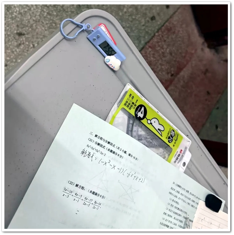 有些考桌上,摆放着一个醒目的计时器,它静静地滴答作响,提醒着同学们时间的流逝。这个小小的计时器,不仅是时间的记录者,更是同学们内心紧张与期待的象征。它提醒着参赛者,时间宝贵,每一分钟都可能决定成败。面对复杂的数学题,同学们必须在有限的时间内迅速思考、精准作答。这种时间压力不仅考验着他们的数学能力,更考验着他们的心理素质和时间管理能力。