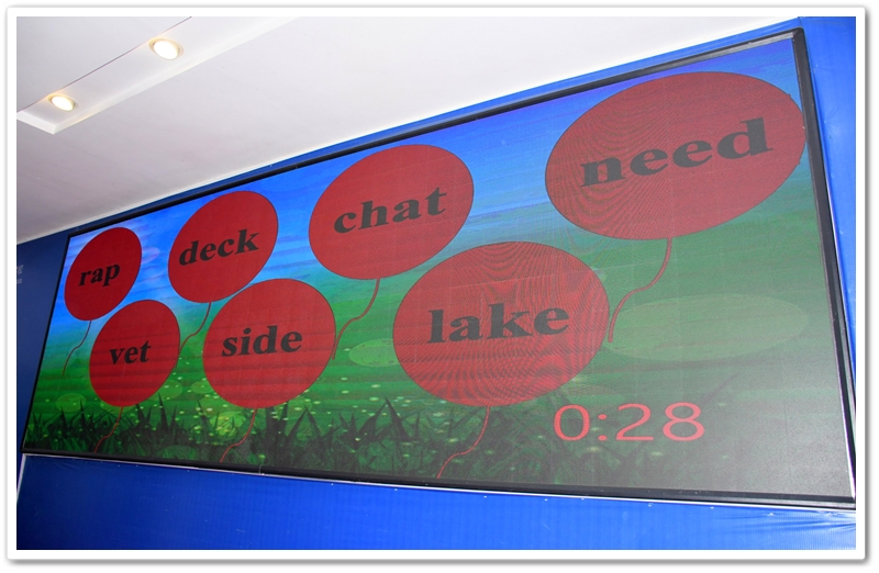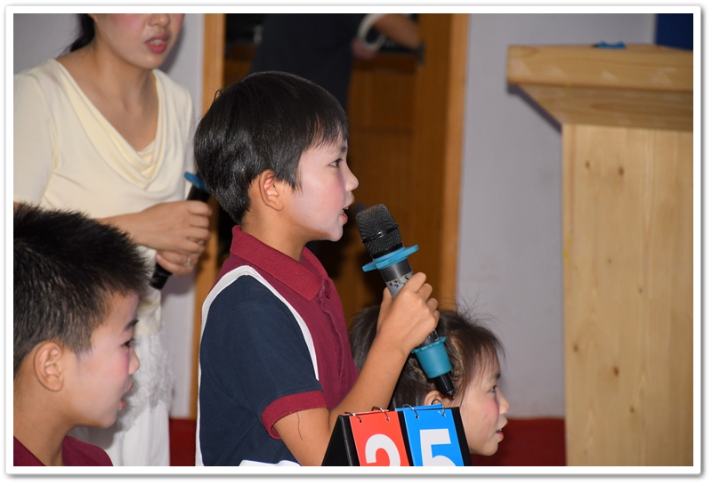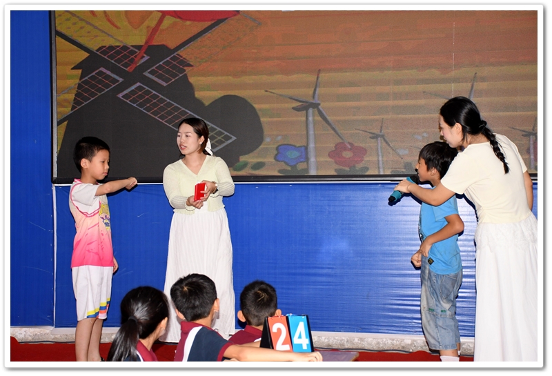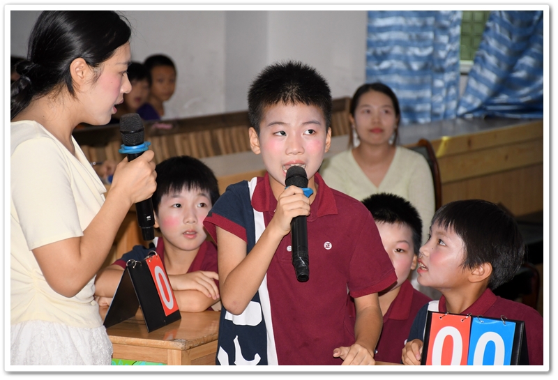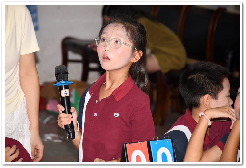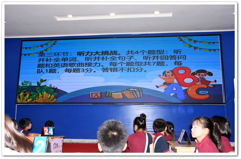 5. Battle of Wits 智慧大比拼:此环节分为五个部分:看图选答案、情景选择、单项选择、选词填空和补全句子。涉及的所有题目都是课文内所学过的知识,考验同学们对所学课文和单词的熟练和掌握程度。答题节奏快,紧张刺激,气氛高涨。