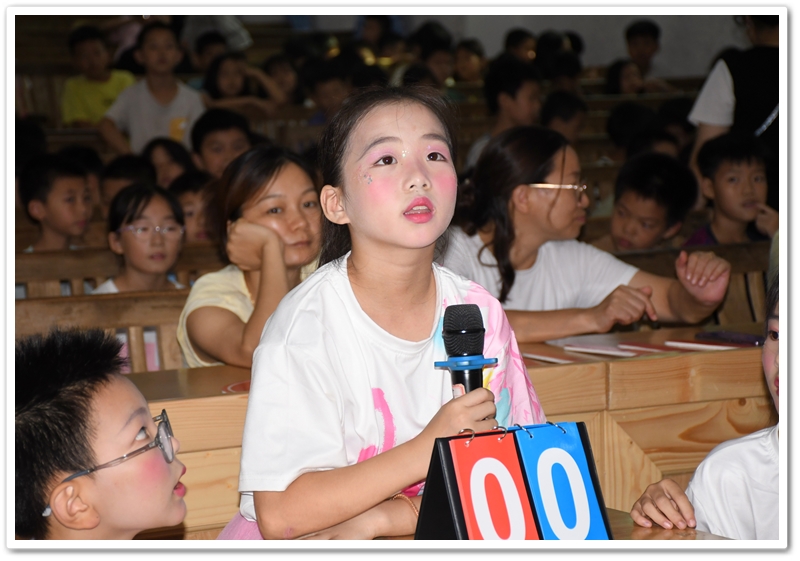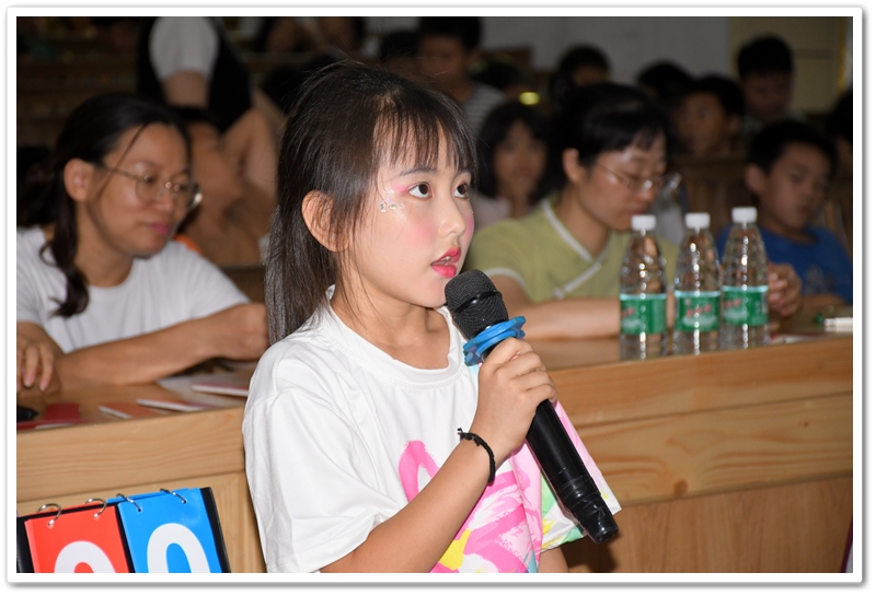 赛场上,小选手们个个全神贯注,反应敏捷。他们或凝神思考,或自信作答;团队成员间默契配合,互相鼓励。每当选手们准确流畅地回答问题,台下便响起阵阵热烈的掌声和加油声。整个赛场充满了积极向上、快乐学习的氛围。