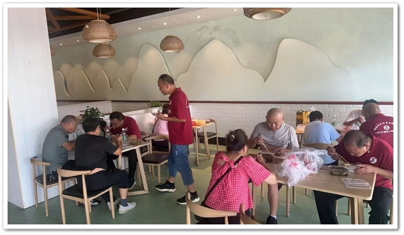 8月9日上午,校南门跃动着出发的喜悦。九时整,第一队十二人驾轻车奔赴广西。车窗外的青山如黛,车内的笑语如铃。午时,服务区的大厅里,正源特制盒饭的香气弥漫开来——金黄煎蛋覆着腊味,酸辣豆角点缀其间,熟悉的滋味熨帖了舟车劳顿,连路过的旅人也频频侧目:“这哪是寻常盒饭?分明是移动的盛宴!”