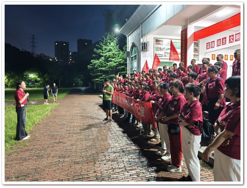 八月的晚风裹挟着暑期的热情。8月9日晚7:30,校广场一片绚烂的红云在朝阳下跃动——116名身着统一大红旅行服的职工们神采飞扬,如一团团跃动的火焰,点燃了启程的欢腾。