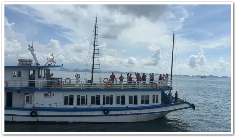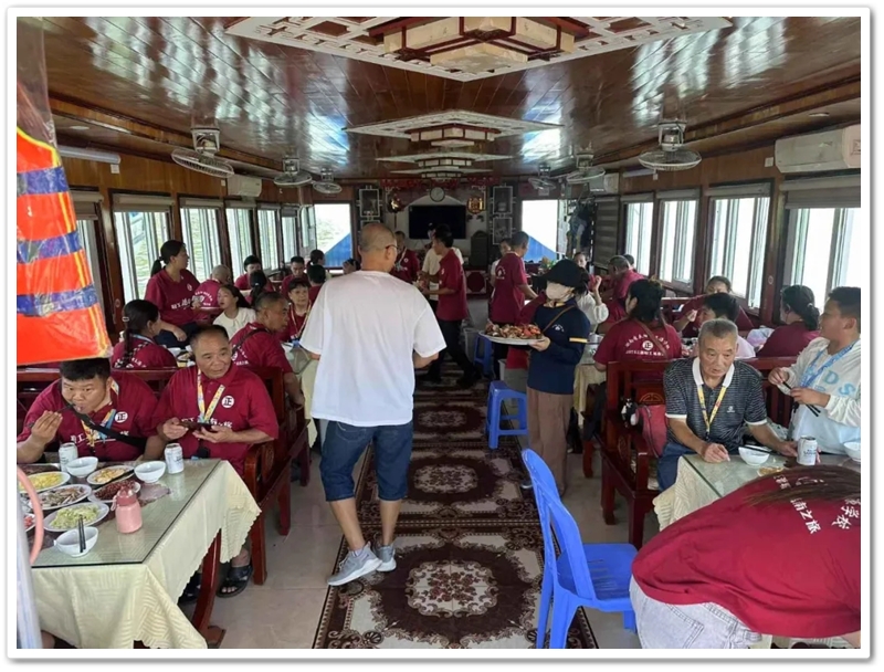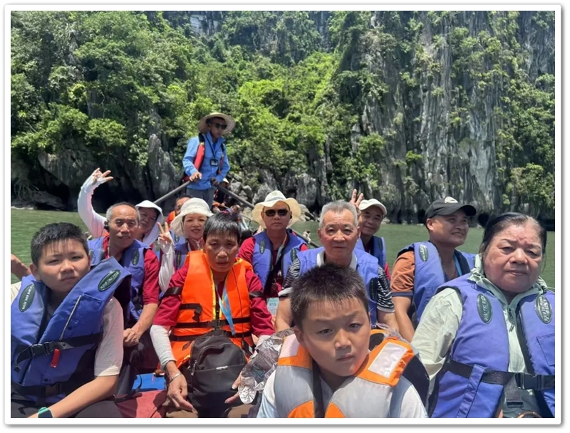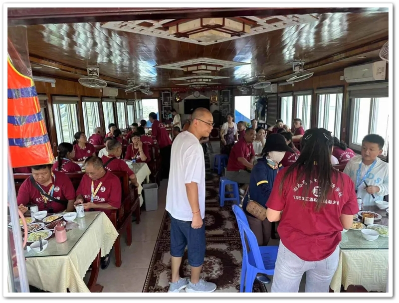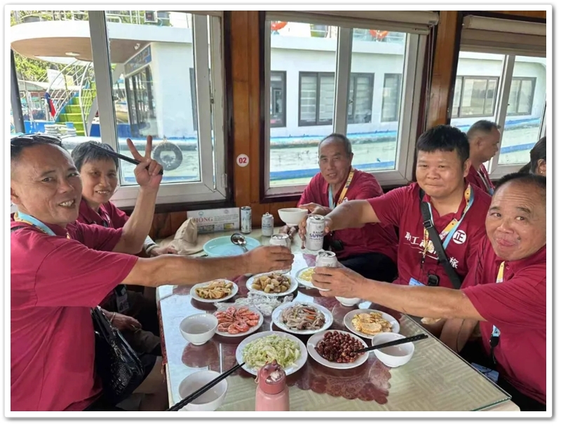 8:00整,三辆大巴载着116位满怀期待的“正源人”,奔赴下龙湾仙境。登上游船,碧波万顷托起奇崛峰林,海天相接处浑然难辨。快门频闪,欢声笑语,将天地壮阔定格成永恒记忆。游船破浪前行,驶近鬼斧神工的斗鸡山、幽深的仙境迷宫与傲然挺立的大拇指峰,满船惊叹骤然沸腾!大家兴致勃勃地换乘快艇和小船,向海湾深处探秘。浪涌之间,偶遇当地渔舟兜售生猛海鲜,众人争相挑选,托付船家烹制。