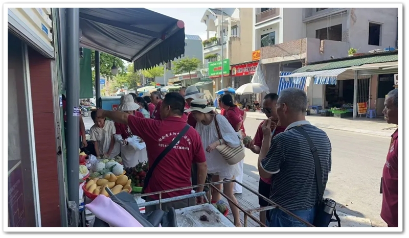 下午3:00启程返航。车轮轻驰,掠过色彩斑斓的壁画墙,恍若穿越流动的露天艺廊。随后,大家驻足当地农市:馥郁的榴莲、清冽的椰汁、甘润的山竹、香甜的释迦、诱人的红毛丹……满载着热带阳光的甜蜜滋味,于4:30返回宾馆。