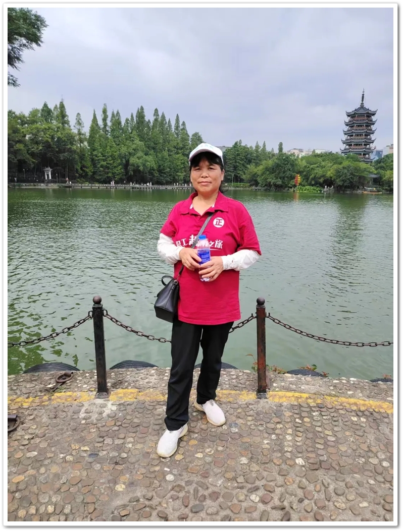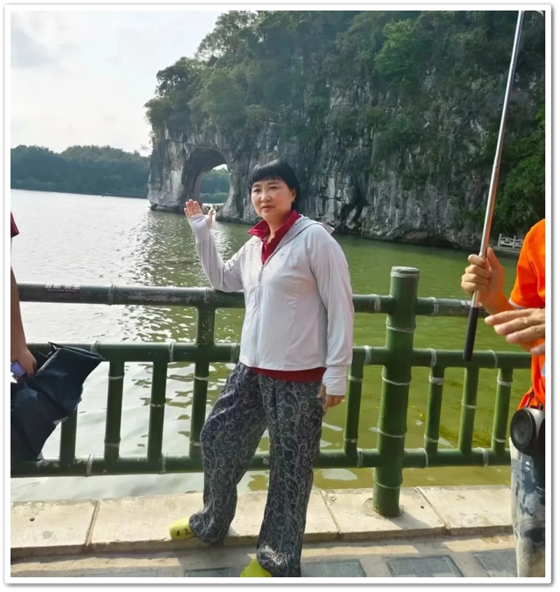 清晨8时,队伍首站抵达桂林城徽——象山公园。巍峨的象鼻山倒映漓江,宛如巨象饮水,大家纷纷驻足拍照,惊叹大自然的鬼斧神工。红装队伍沿江而行,与青山绿水相映成趣,引得游人频频侧目。