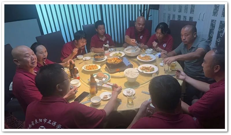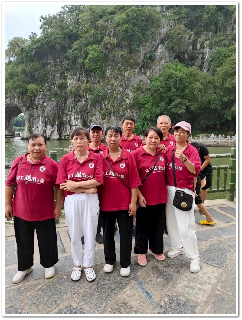 漫步青石板路,古南门的斑驳城墙诉说着桂林的烽烟往事;东西巷里,明清风格的骑楼与创意店铺碰撞出古今交融的烟火气。逍遥楼上登高望远,尚水美食街中品尝各式桂林特色美食:桂林米粉、啤酒鱼、田螺鸡、桂花糕、油茶、三花酒……大家笑谈:“既养了眼福,又饱了口福!” 途中,一段插曲更显正源人的高尚品格——四食堂女员工黄青容拾获广东游客遗失的手机,主动归还,父女俩感动落泪,连赞:“你们职工素质真高!”