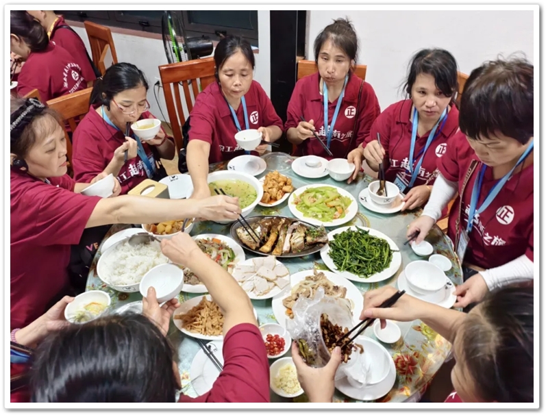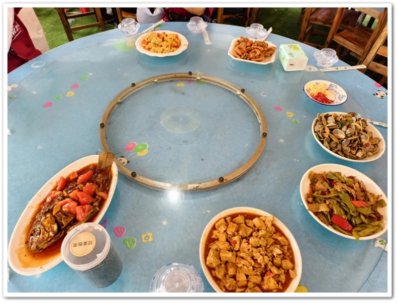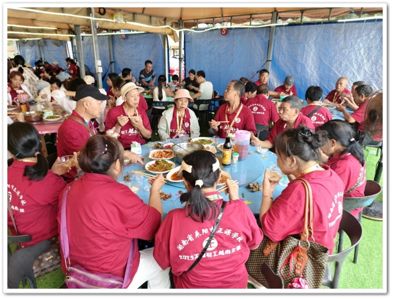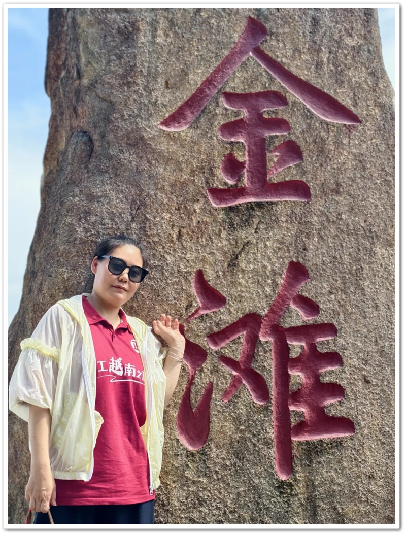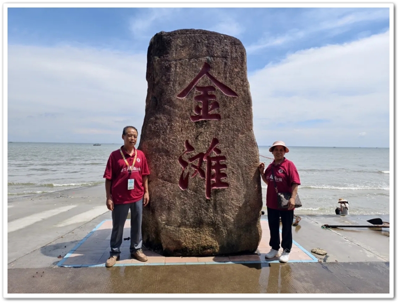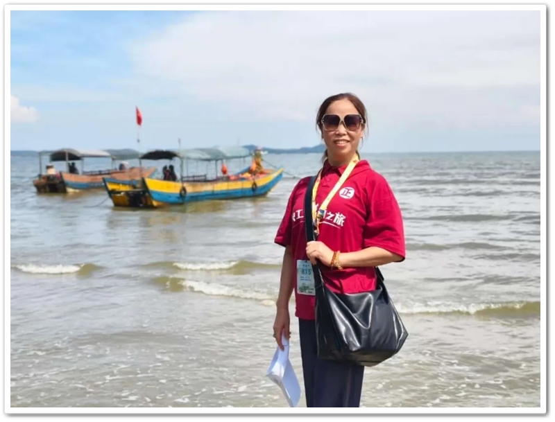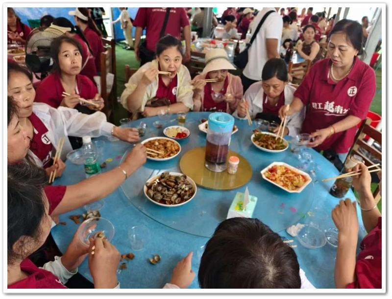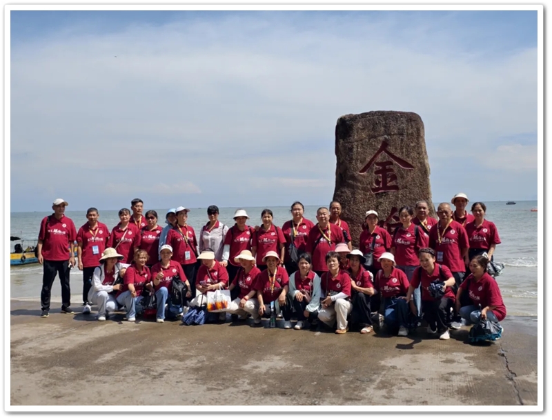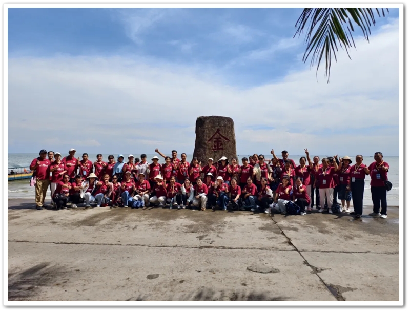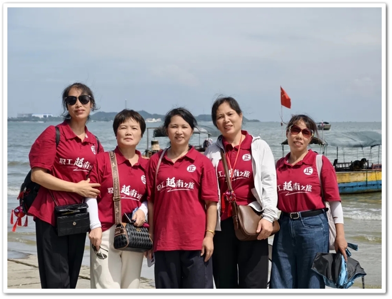下午两点十分,旅游车停在东兴市万尾金滩边的餐馆前。刚推开车门,海风裹着海鲜的咸香扑面而来,餐馆老板系着油亮的围裙在门口迎客:“刚出锅的虾婆,要不要先尝两只?”餐桌上,麻婆豆腐的红油泛着亮光,素炒白菜带着清甜,香煎鸡尾虾的壳脆得能嚼出声响。一位生活老师夹起一只虾,边剥壳边说:“这虾比咱们菜市场的鲜多了,回头得带点干货。”平时大家吃饭较早,而今天到下午两点才开餐,看到满桌的特色佳肴,大家早已垂涎三尺,迫不及待,一个个津津有味地咀嚼着,有些同志不到十分钟就用餐完毕。先吃完的几个女同志迅速走到海边那块刻有“金滩”字样的石碑前,摆出各自认为最美的造型,让同伴帮他们用手机拍下了美好的回忆。见女同志争先恐后留影,男员工也跃跃欲试。旅游总领队蒋智敏助理见大家兴致颇浓,连忙掏出手机,用他专业的摄影水准帮各位职工定格下了此刻的美好。单照过后,总领队蒋又招呼大家聚在“金滩”石碑周围,给我们的团队留下了今天的第一张大合影。