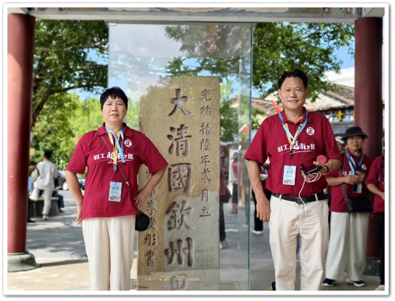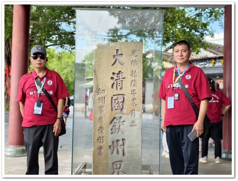 餐后车行不久,导游指着窗外说:“前面就是‘大清第一界碑’了。”车子缓缓停在绿荫环绕的广场上,界碑周围种着几株三角梅,紫红的花瓣落在青石板上。碑面“大清国钦州界”六个大字深刻入石,边缘虽有些风化,笔锋的顿挫仍清晰可辨。几位摄影爱好者立刻架起相机,调整角度捕捉光影。谢师傅戴着老花镜凑近细看,忽然指着一处刻痕说:“你们看,这好像是后来补刻的,说不定是当年立碑时出了错。“这块界碑是1890年清政府与当时的法国殖民者划定中越边界时所立。”导游的声音带着历史的厚重,“当时越南是法国殖民地,清政府屡经谈判后确定了这段边界,这块界碑便是这段历史的见证。清代时,越南曾是中国的藩属国,两国关系密切,互通使节、商贸往来频繁,直到19世纪末才逐渐划定明确边界。”
