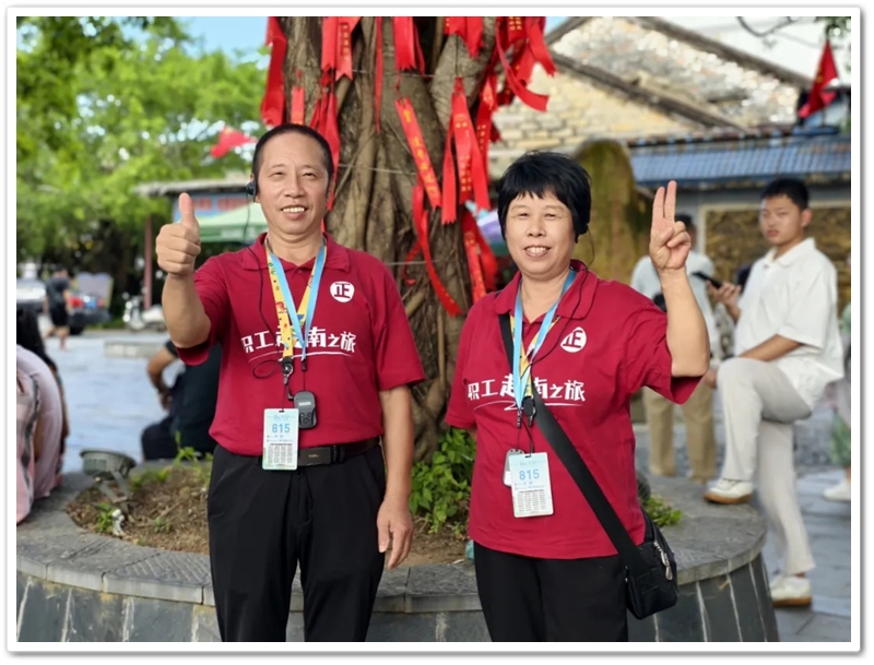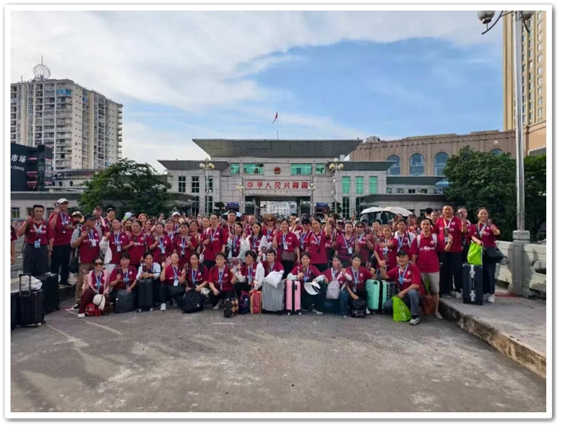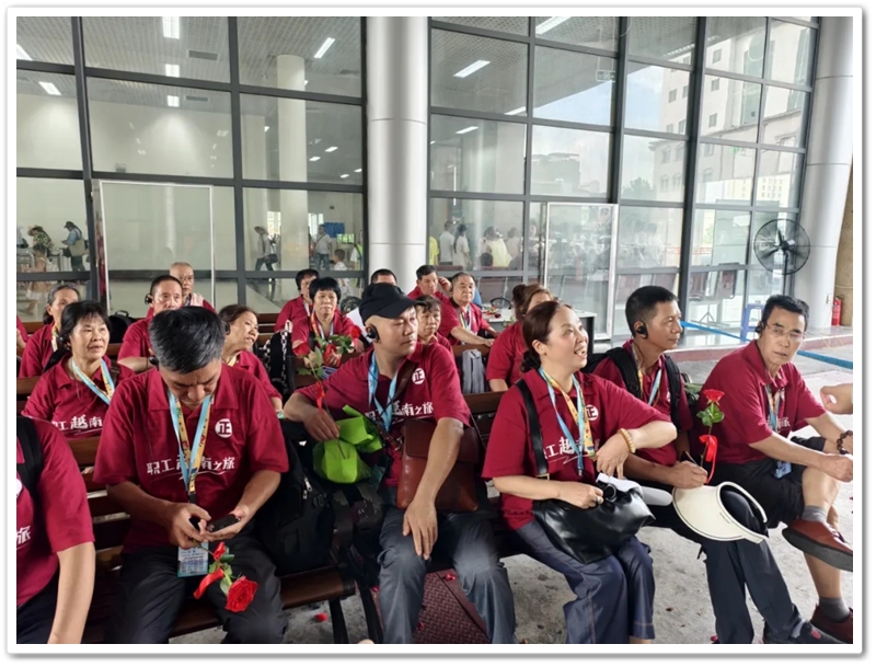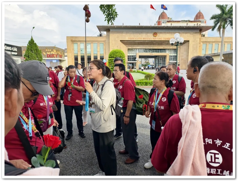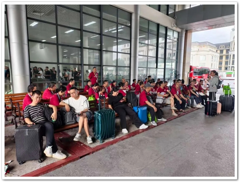 清晨的南宁火车站,阳光透过站台的玻璃幕墙,在地面投下斑驳的光影。候车椅上还留着早班旅客的余温,行李箱的滚轮碾过地面,发出细碎的声响。上午十点,正源职工一行75人拖着行李箱走出出站口,导游曾军举着挂有卡通公仔的伸缩杆在人群中格外显眼。他笑着帮一位老师提过沉重的行李箱:“阿姨放宽心,这趟行程我保准让大家玩得舒心!”众人到齐后,导游与大家简单寒暄了几句后,众人分乘两辆旅游车向东兴口岸驶去,车窗外榕树高大的身影掠过,一场期待已久的跨国之旅就此启程。