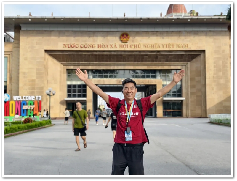 车子驶过北仑河大桥时,桥下的河水泛着翡翠般的绿,几只白鹭贴着水面掠过。对岸的越南芒街隐约可见,骑楼的廊柱涂着明黄的漆。下午四点整,带着对界碑的感慨,一行人抵达东兴口岸。红色的“中华人民共和国东兴口岸”十一个大字在阳光下格外醒目,对岸隐约可见越南芒街的建筑。大家按顺序排队,将护照递给边检官员,盖章的“啪嗒”声响起时,心里竟莫名有些激动。半小时后,双脚真正踏上越南土地,看着路边招牌上陌生的越南文字,听着耳边夹杂汉语的越南语对话,一种奇妙的感觉油然而生——我们真的来到了另一个国家?