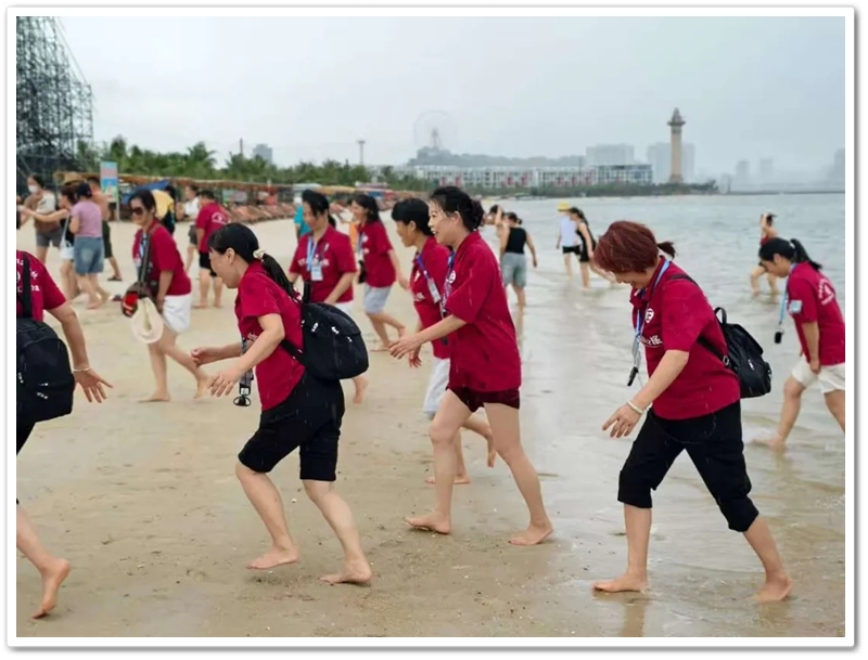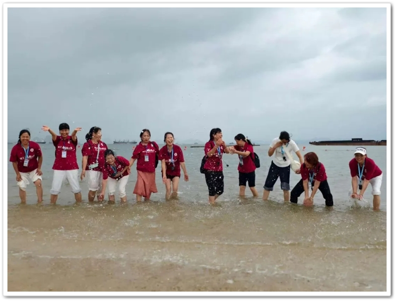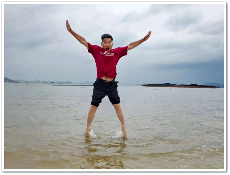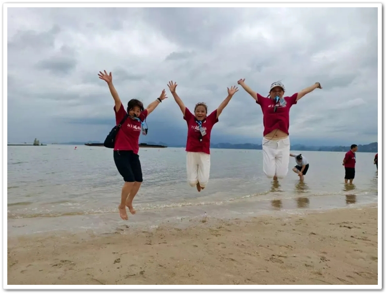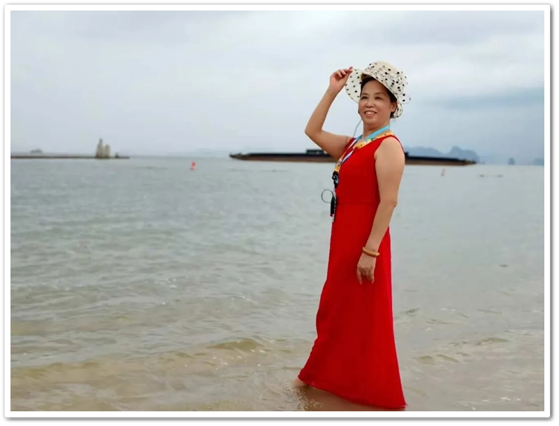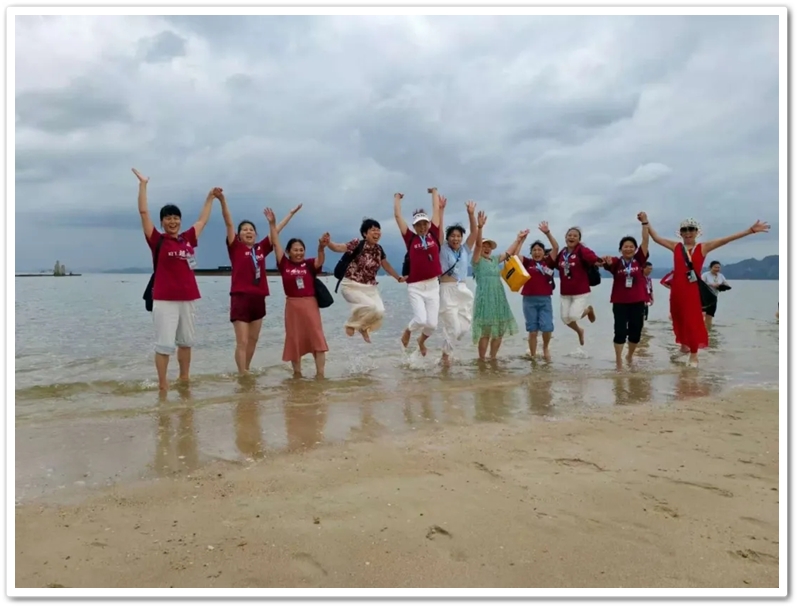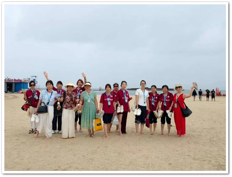 从月亮岛返回游船,中餐香气混着海风萦绕。简单用餐后,船行20分钟,金色海滩在阳光下铺开。众人脱鞋赤脚踩沙,暖沙从趾缝漫过,痒意裹着惬意。海浪卷起白沫漫来,刚触脚踝又退去,带起细碎沙响。有人追浪奔跑,被退潮海水拽得趔趄,惹来一片笑;有人蹲身拾贝,白扇贝壳映阳光,流转虹彩;有人举起手机转圈,想把蓝天碧海、金滩与笑脸全框进镜头。