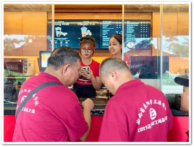 咖啡到手后,蒋助理似乎意犹未尽,对着卖咖啡的小姐姐笑着打趣道:“嫁到中国去吧,中国老公有钱呢!”。小姐姐连连摆手,用生硬中文混着英语回答:“不嫁,我是越南的!”简单对话逗得服务区员工一阵哄笑,也让我们对“越南女子都想嫁中国”的传言有了新认识——原来这说法并非全貌。