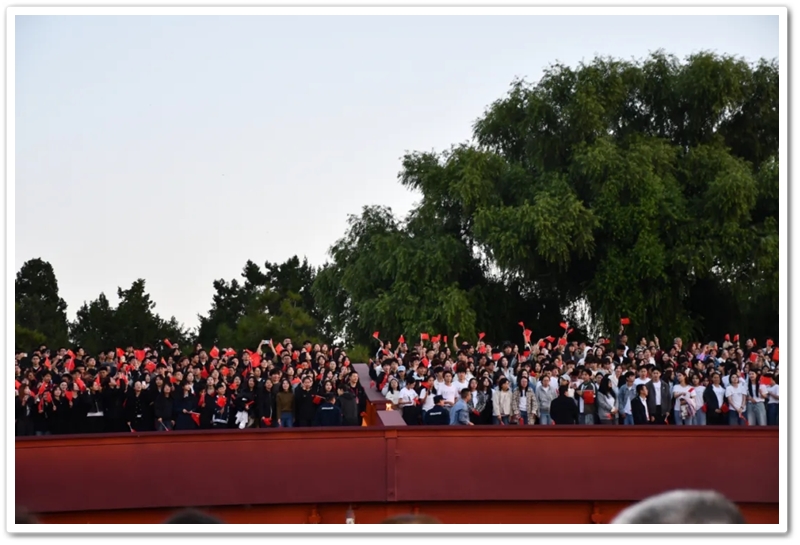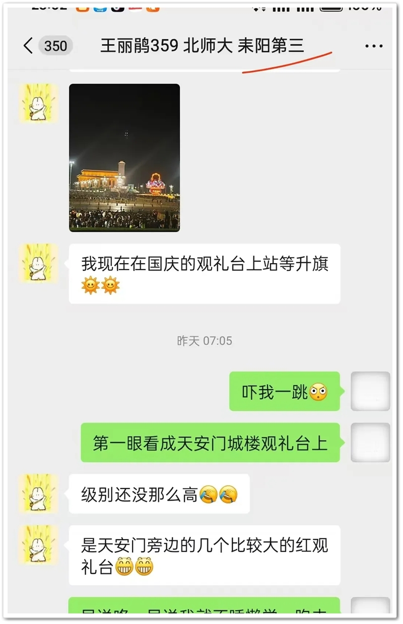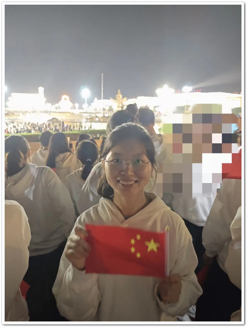 观礼台上,2024届王丽鹃,正和北京师范大学的同学们一起唱响《歌唱祖国》,献礼祖国生日盛典。2023年第14届纪念五四北京励志行,彼时尚在读高二的他们,也曾在天安门广场里通宵守候观礼。如今以首都大学生代表身份登上观礼台,望着广场上学弟学妹们的“正源红”,王丽鹃仿佛又见当年的自己。这位考入北师大的农家女孩,明日亦将再赴圆明园与校长和老师们欢聚,为第17届励志行学子传经送宝,只盼更多学弟学妹圆梦北京高校。