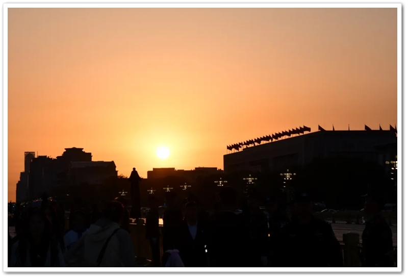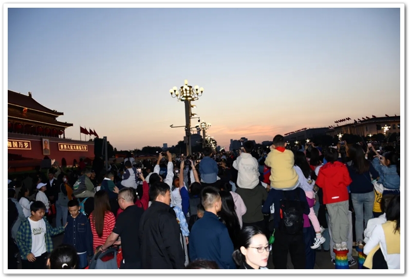 从酒店到地铁大望路站仅需十多分钟路程,抵达时,凌晨四点的站台仍只有清冷的灯光相伴。首班地铁要等到4 点 52 分才会驶来,望着彼此眼中按捺不住的期待,有人提议:“拼车去吧!”所幸,此处位于市中心,距离天安门只有20 元车程。车窗外,北京的凌晨缓缓苏醒,路灯光晕在柏油路上拉长,似在为这群远道而来的学子引路。抵达天安门,一路安检过后进入广场时,天际微露鱼肚白。