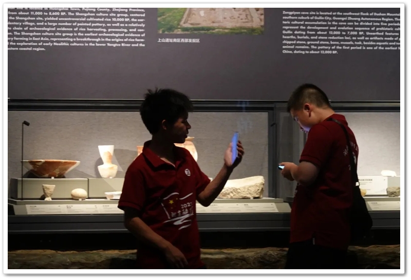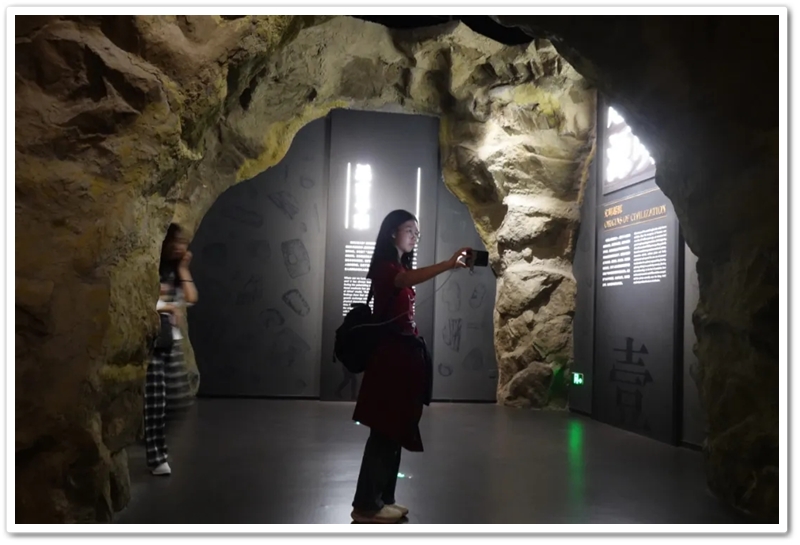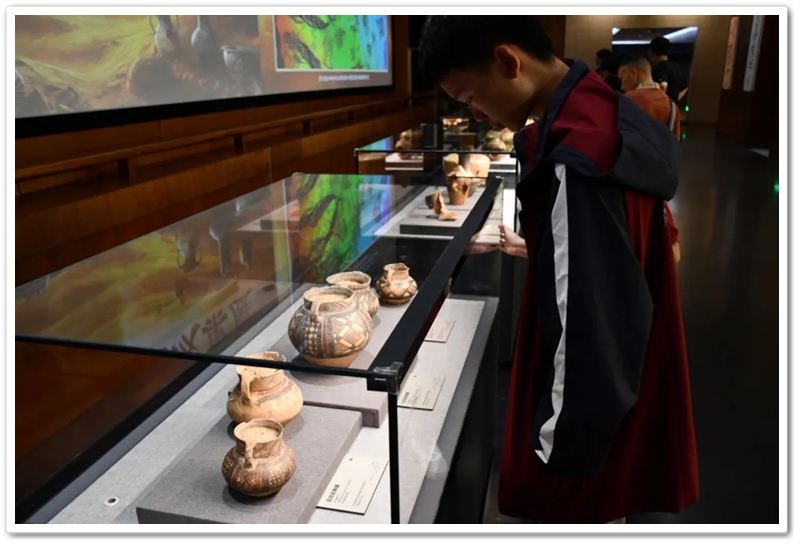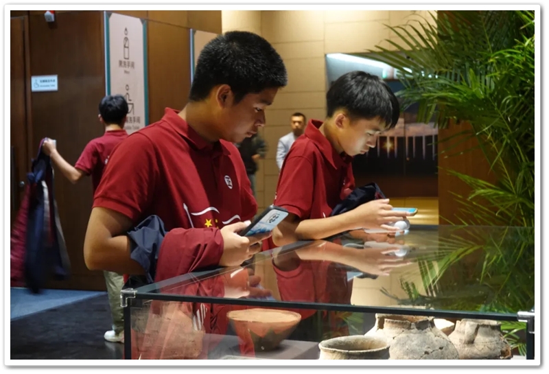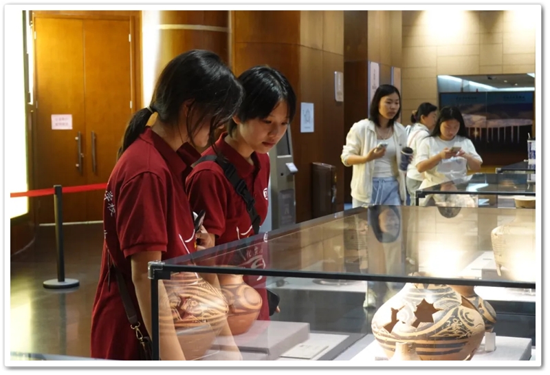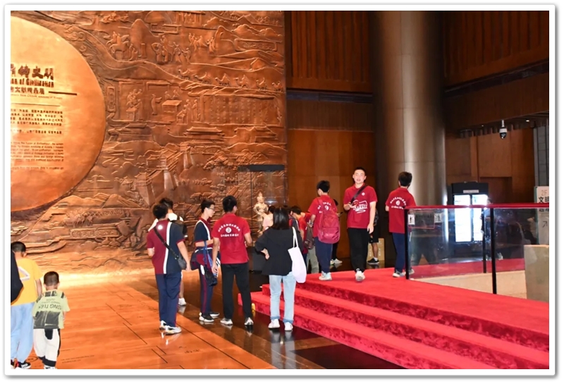 另一队则走进了中国考古博物馆,“考古中国” 展厅内,时光仿佛被按下了慢放键,让人们得以细细品味文明的诞生与发展。良渚玉器沁色温润,纹路中藏着远古先民的祭祀密码,等待着人们去解读;二里头陶器的胎土粗糙,表面还留着手工制作的痕迹,却见证着中国最早的王朝文明,是中华文明延续的重要印记。多次荣登央视的“北大考古女孩”钟芳蓉,如今大学毕业圆梦敦煌。学姐的励志故事与眼前的“诗和田野”,亦将激励越来越多的正源学子“遵循内心的声音”,追寻自己的诗和远方。