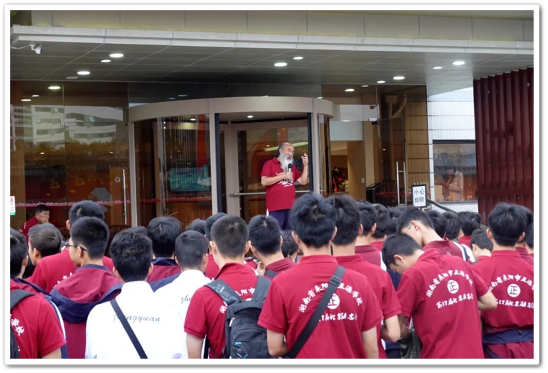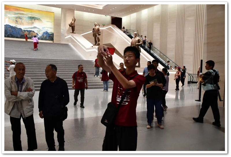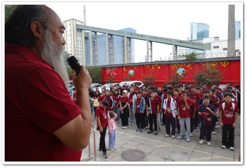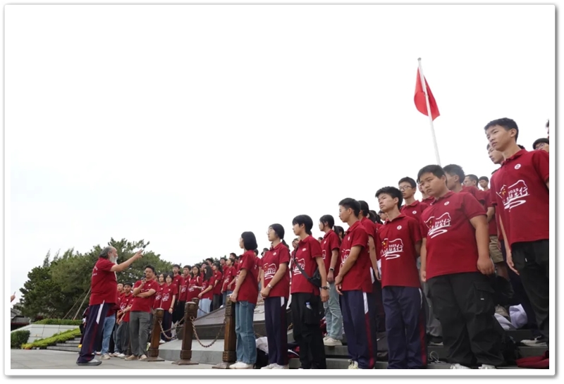 临近中午,参观接近尾声,师生们在纪念馆台阶前集结列队。几名同学率先走上前抒发感想,从展品细节谈到历史启示,从先辈牺牲讲到当代责任,真挚的话语引发全场共鸣。罗校长走上前,结合当下经济形势与反腐形势,为同学们带来了深刻的现场思政课。他一如既往地结合身边事例启发大家去深入思考现象背后的本质,希望同学们明白—— 当年我们党能带领人民取得胜利,靠的是民心所向;今天国家要实现强盛,同样离不开风清气正的政治环境和坚实的经济基础。