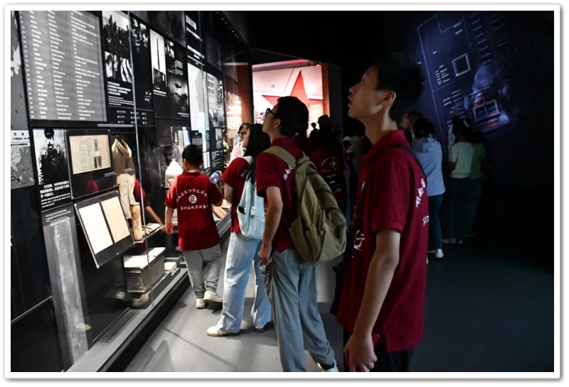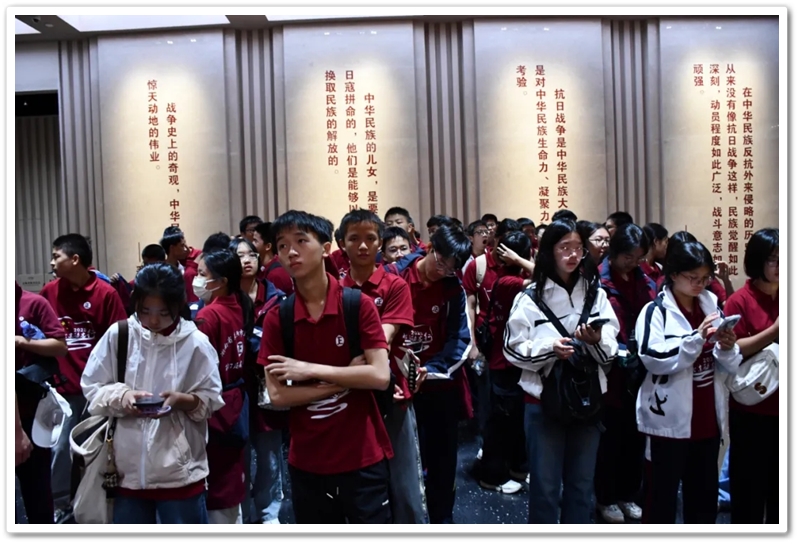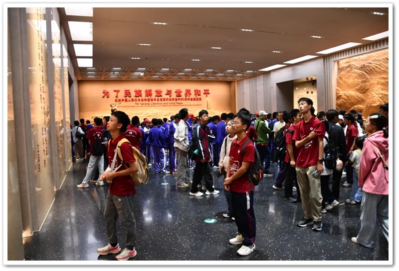 宛平城内,中国人民抗日战争纪念馆更显庄严肃穆。相较于往年,纪念馆地下广场新增的第二展馆为这段厚重历史增添了更丰富的叙事维度,让师生们得以在时空交错中触摸更鲜活的抗战记忆。上午时分,师生们有序入馆,开始了长达两小时的沉浸式参观。