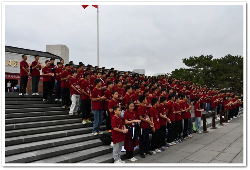 “我的家在东北松花江上……”没有伴奏,没有指挥,清澈而坚定的歌声在纪念馆前回荡。173 位同学昂首肃立,齐声唱响《松花江上》。声音里满是对先辈苦难的共情与对和平的珍视。歌声落下的瞬间,全场静默片刻,随后响起热烈的掌声,这掌声是对历史的致敬,更是对青春责任的宣誓。