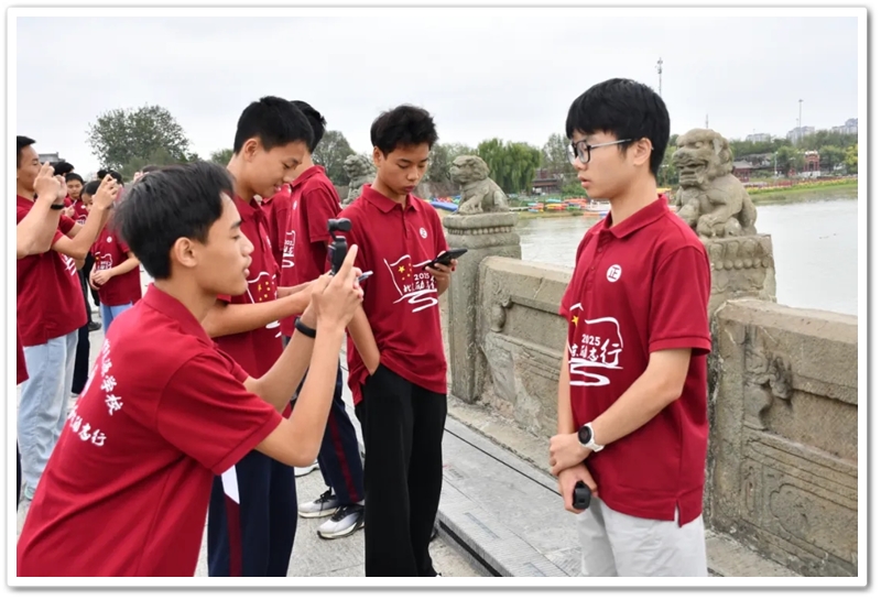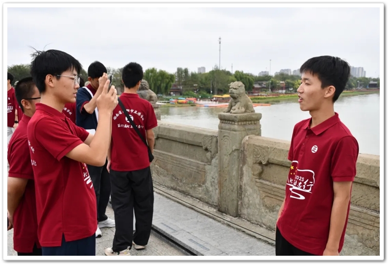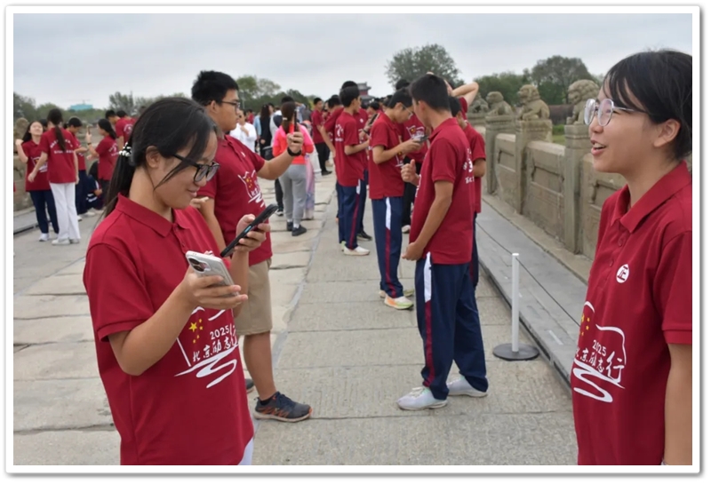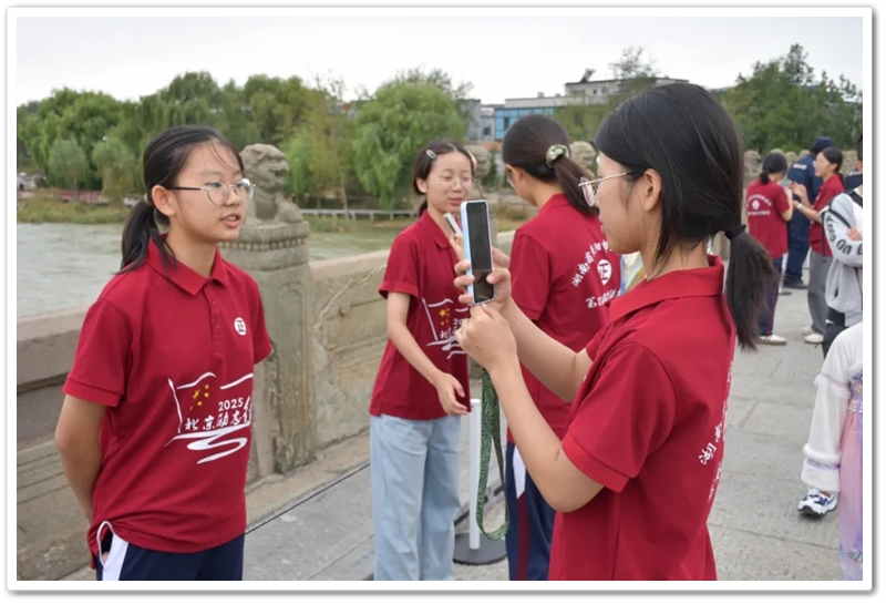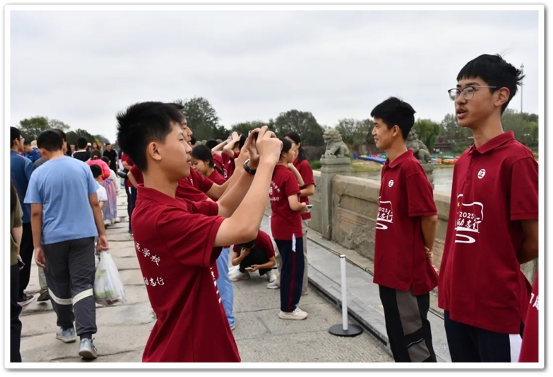 从“七七事变” 的烽火硝烟到如今的和平暖阳,卢沟桥见证了中华民族从苦难走向复兴的伟大历程。同学们在桥畔驻足远眺,将石狮的模样、河水的波光与心中的感悟一同定格,这份亲身实践的历史记忆,远比书本知识更加深刻持久。