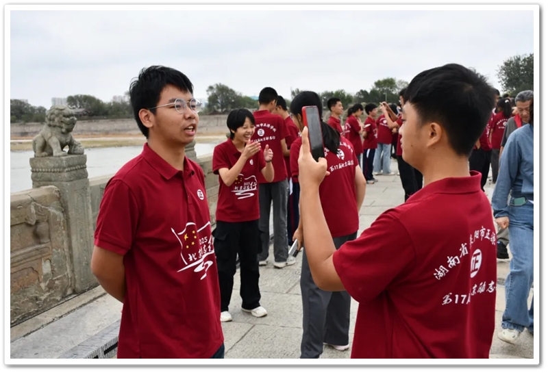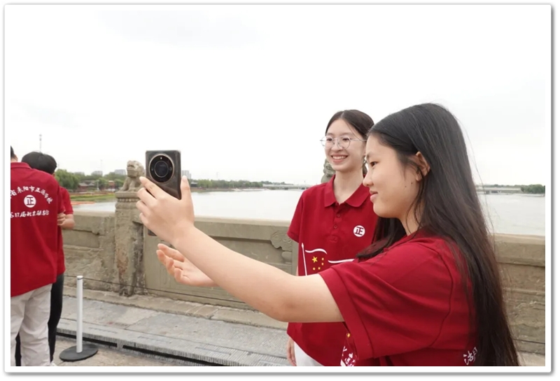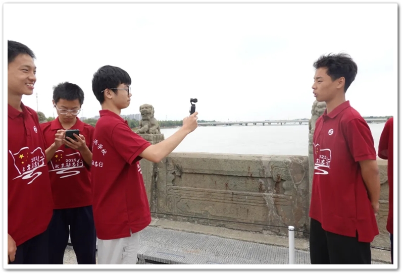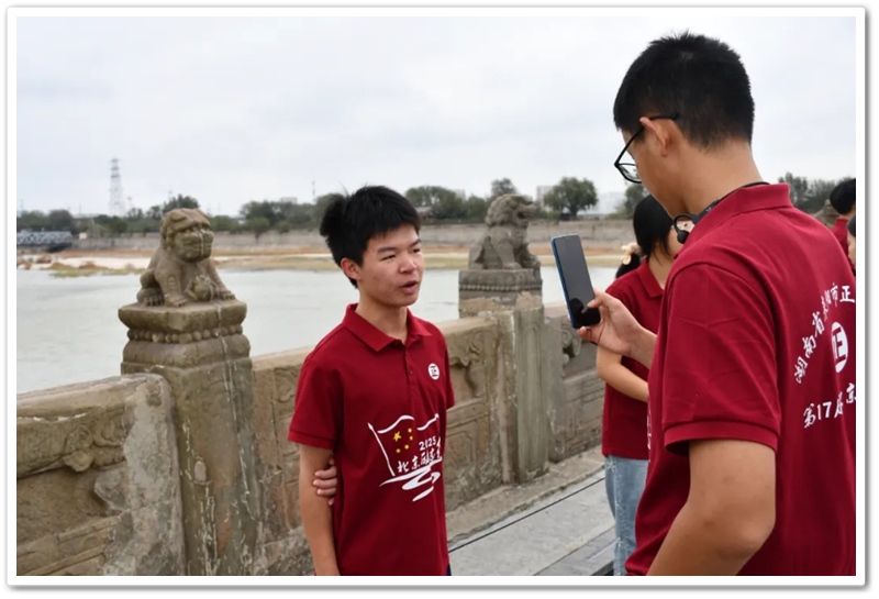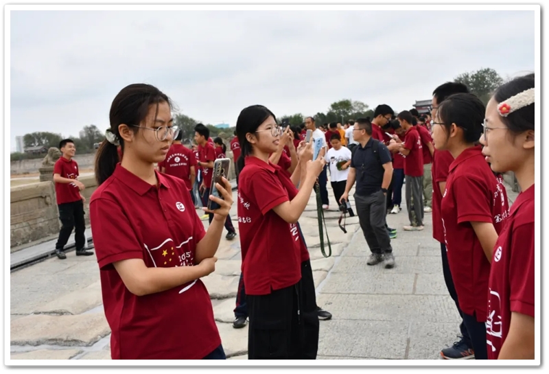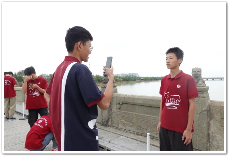 丈量历史,触摸沧桑,庄严肃穆的静默沉思中,同学们两两结对,对着桥面遗迹轻声交流历史细节,用手机相机互相记录观展感悟,吐露心声。青春的声音与历史的回响在桥面交织,让这段沉重的历史在互动中变得更加鲜活。