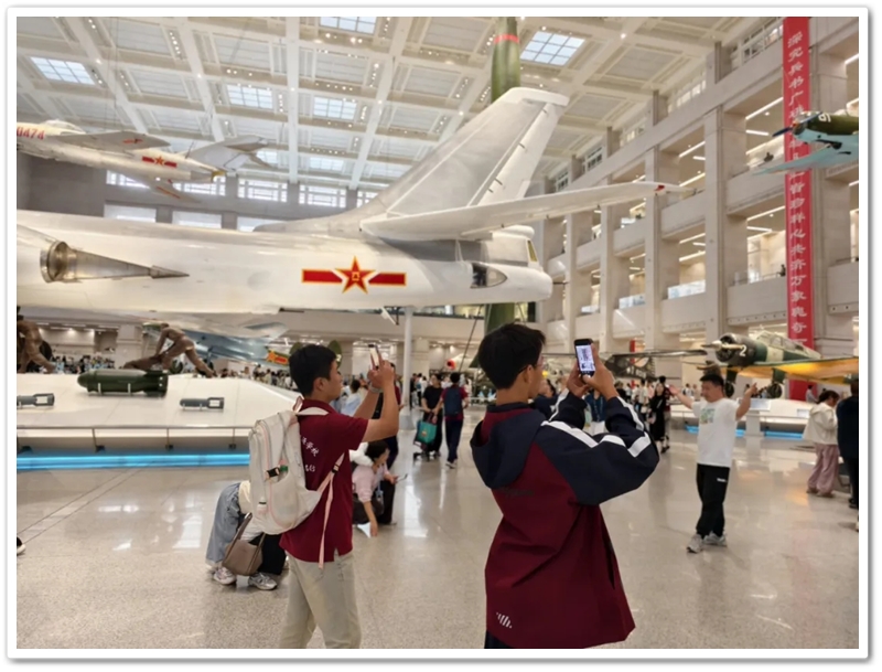 简单的中餐休憩过后,师生们转赴中国人民革命军事博物馆,在武器装备与军事史料的展示中,直观感受我国国防力量的发展变迁,进一步深化了“科技强军、国力兴邦” 的认知。相较于往年行程的紧凑,当天参观结束后天色尚早,学校特意留出自由研学时间,让同学们追寻心中的理想坐标。