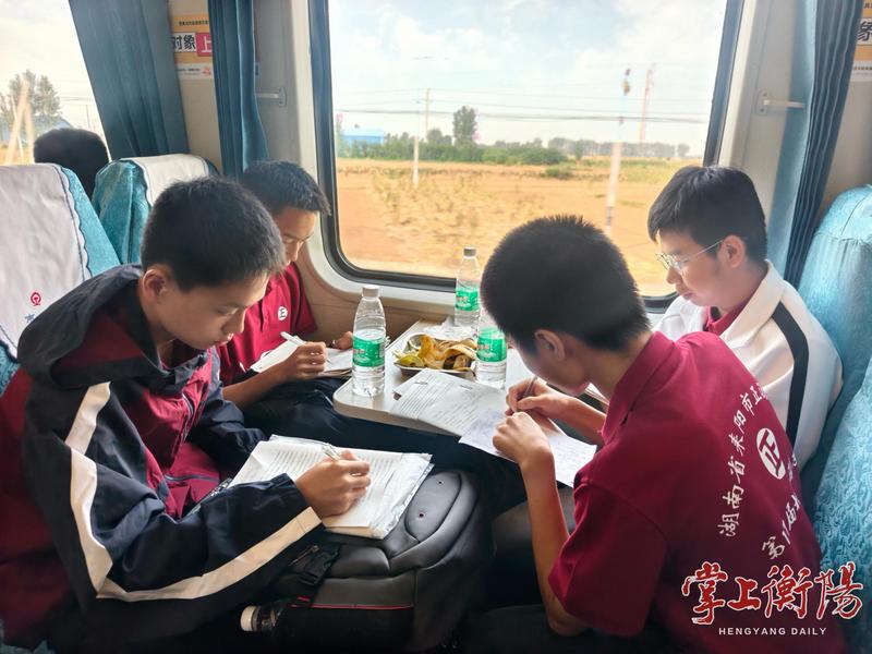▲在“北京励志行”的火车上,学生们保持着学习的好习惯。