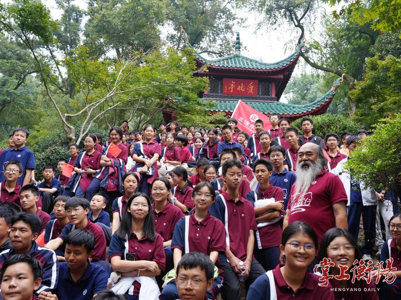 ▲在爱晚亭,正源学子集体诵读《沁园春·长沙》。