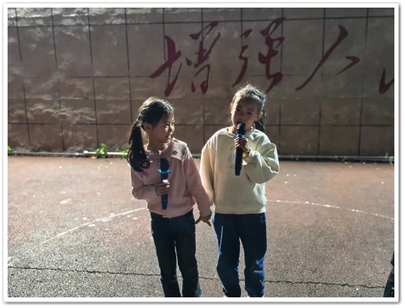 最动人的“我的闪亮一分钟”环节,更是把“人人皆可发光”的理念展现得淋漓尽致。初生牛犊不怕虎,学前班的谷文珏和殷雨墨最先自信地走上台,两人手拉手站在话筒前,小脸蛋有点红,当《小小蜡笔》的前奏响起,谷文珏先小声唱起来:“小小蜡笔穿花衣,红黄蓝绿多美丽……”殷雨墨立刻跟上,奶声奶气的声音却格外清亮,台下立刻响起鼓励的掌声,连老师都轻轻跟着打节拍。接着,四年级的倪志煌和欧阳过并肩而立,两人拿着同一支话筒,温柔唱起《可不可以》,倪志煌唱到高音时,欧阳过还悄悄给他递了个眼神,两人相视一笑的模样,惹得台下同学轻轻跟着哼唱。五年级的谢毅明一登场便点燃气氛,随着《科目三》的旋律,他手腕一翻、脚步一滑,卡点的动作帅气又灵动,台下立刻响起“哇!好酷”的惊叹声,还有同学跟着模仿他的动作。而最让人惊喜的是一年级487班的陈伊涵,她表演的舞蹈叫《小神仙》,小小的身影站在舞台中央,跟着音乐跳起儿童舞蹈,小手摆动、脚步跳跃,每一个动作都鲜活灵动,仿佛把快乐揉进了舞姿里,跳完后还深深鞠了一躬,让台下的掌声久久不停。