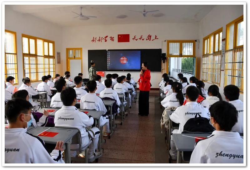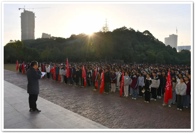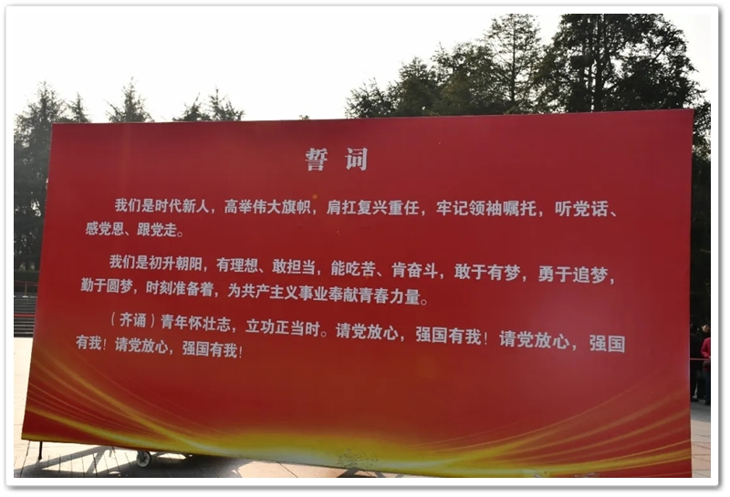 开班仪式在雄壮的红歌声中拉开序幕。“没有共产党就没有新中国……”全体师生齐声高唱,歌声嘹亮,响彻云霄,每一个音符都饱含着对党的无限深情与对历史的深切缅怀。随后,面对鲜红的旗帜,同学们举起右拳,庄严宣誓:“请党放心,强国有我!”八字誓言,字字千钧,是青春的承诺,更是时代的回响。那一刻,一张张年轻的面孔无比坚毅,一双双希望的眼睛闪烁着理想的光芒。