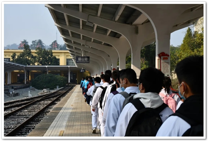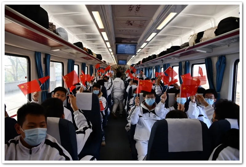 朝霞般辉煌灿烂的红色专列已停靠在站台,它载着少年们驶向历史,驶向来处,亦载着他们驶向朝霞般辉煌灿烂的未来。
