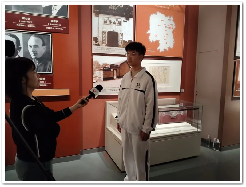在参观毛泽东同志纪念馆时,我们遇到了湖南教育电视台的栏目组,栏目组的记者采访了360班两位同学,非常赞赏正源学校的学生。