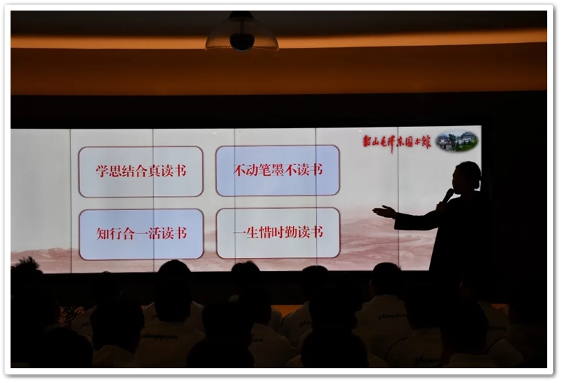 当晚,研学营地大讲堂灯火通明,一堂别开生面的“思政大课”准时开讲。课程以毛泽东同志的成长轨迹与思想发展为脉络,引领同学们进行了一场深刻的精神探索。