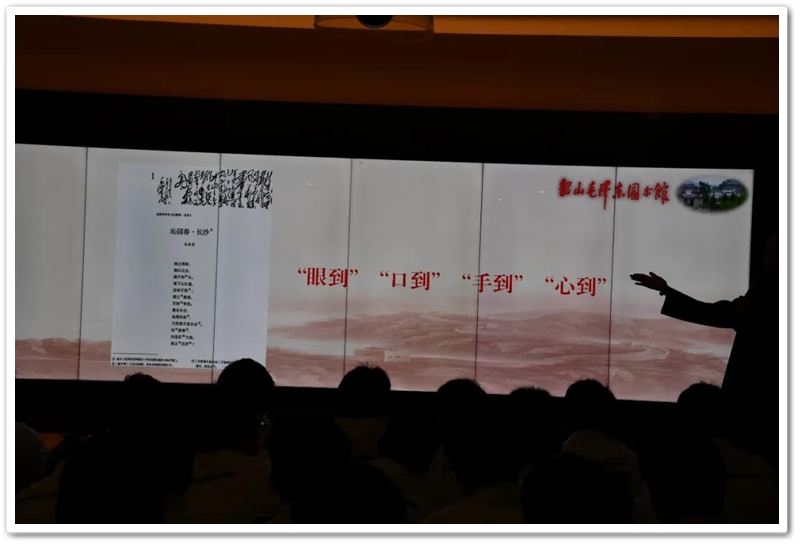 11日上午,研学队伍开启了实地寻访之旅。土墙黑瓦,陈设简朴,走进毛泽东同志故居,我们就亲身感受了孕育一代伟人的乡土气息与家庭环境。在毛泽东同志纪念馆和毛泽东图书馆,大量的历史文物、珍贵文献和影像资料,系统展现了毛泽东同志光辉的一生与中国革命的壮丽篇章。我们看到他走在安源煤矿的路上,看到他在遵义会议上指挥若定的身影,聆听了开国大典上浑厚骄傲的声音,我们看到了一个至爱的父亲将儿子送上抗美援朝的前线,我们看到了毛主席的书房,深深地被他“不动笔墨不读书”打动了,我们更是深深地体悟了“要读有字之书,更要读好无字之书”的实践精神……
