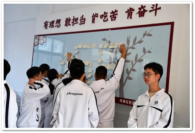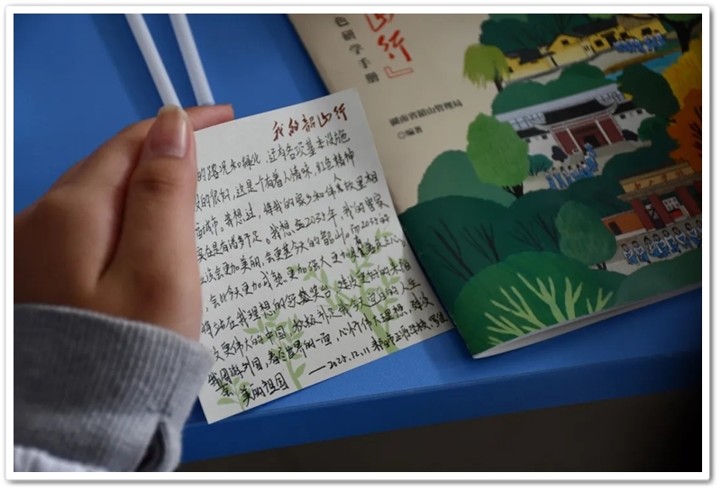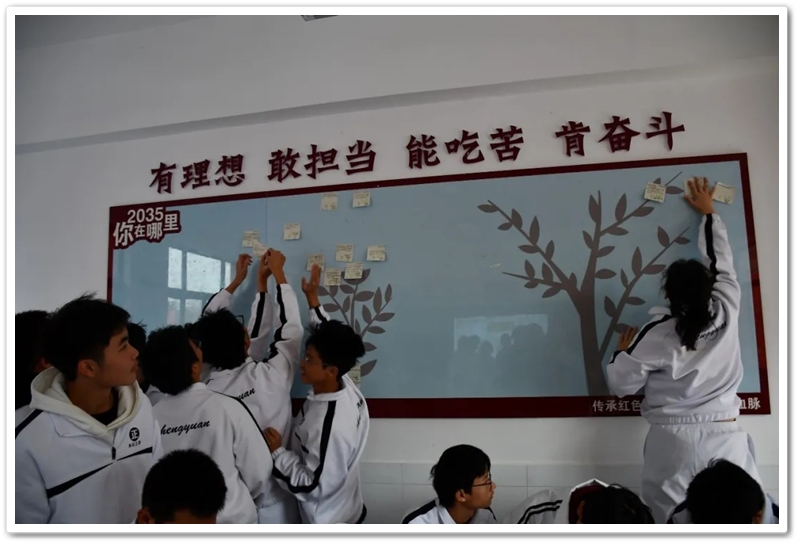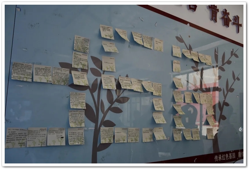 最后,同学们在便签上写下“2035年我在哪里”的留言,整齐张贴在教室后面的黑板上。在学习笔记上写出对研学的感受,对学习的总结,对未来的期待。他们此刻心中必然明了,传承不是空洞的口号,而是需要内化于心、外化于行的自觉行动;担当不是遥远的未来,而是始于当下、见于细微的实际作为,梦想不是虚妄的企图,而是无畏险阻、奋勇争先的坚定足迹。