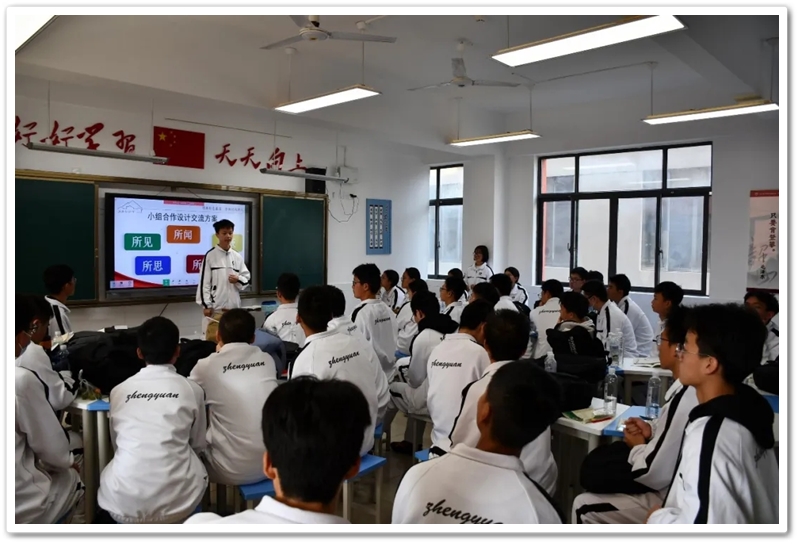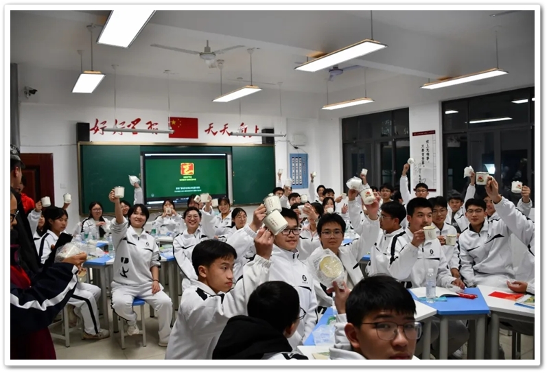有的同学从广场献花时阳光洒在铜像上的画面,联想到天安门城楼上宣告新中国成立的伟大瞬间,感叹创业维艰,守成不易;有的同学聚焦那件73个补丁的睡衣,畅谈对艰苦奋斗新时代内涵的理解,认为奋斗是青春最亮丽的底色;更多的同学结合思政大课的启发,谈论自己的理想与规划,表达了要将小我融入大我,用所学知识报效祖国、服务人民的决心。班会课上,思想的溪流汇聚成河,红色基因在交流碰撞中悄然植入心田。