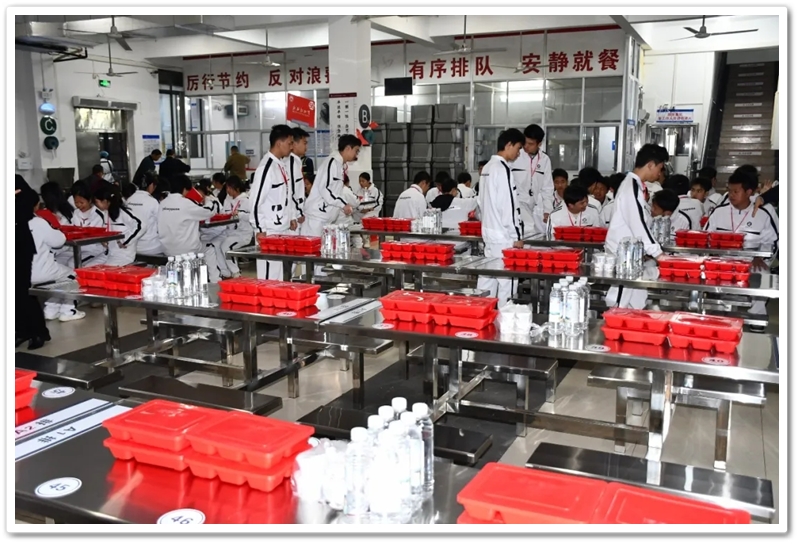 时至中午,我们开餐了。正源盒饭历来享有盛名——辣椒炒肉、咸豆角炒干鱼、粉蒸肉、咸鸭蛋和青菜,带队的教官与同行的领导和我们同享美食。