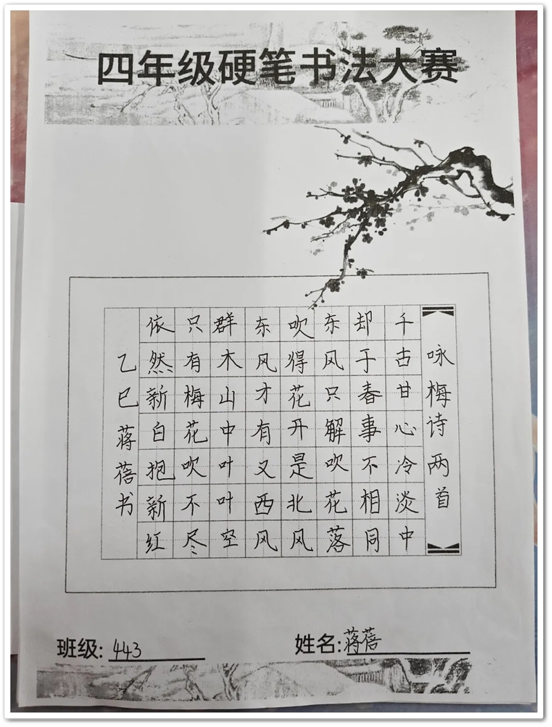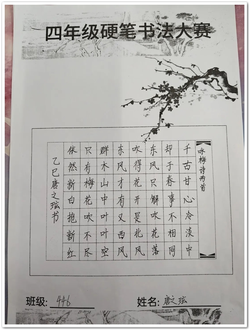 60分钟的比赛时间悄然流逝,当监考老师宣布比赛结束时,同学们还意犹未尽地端详着自己的作品,有的轻轻吹了吹纸上未干的墨迹,有的和同桌小声交流着书写心得。一张张作品整齐上交,纸上的楷书或端正清秀,或刚劲有力,或灵动活泼,每一笔都凝聚着孩子们的努力,每一划都展现着汉字的独特韵味。