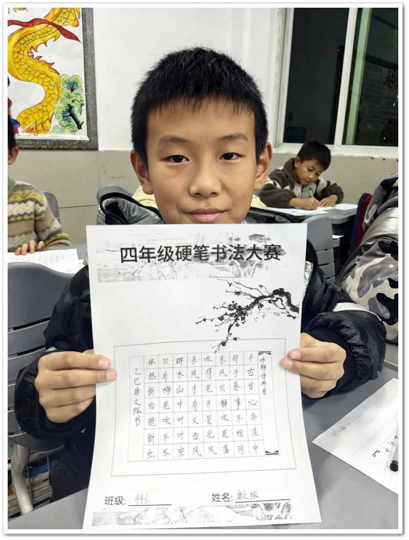 冬日的校园里,墨香悄然弥漫。12月7日晚自习,正源四年级硬笔书法比赛在各班教室如期举行,三百余名同学手握笔杆,在洁白的A4纸上书写汉字之美,让传统文化的种子在笔尖悄然绽放。