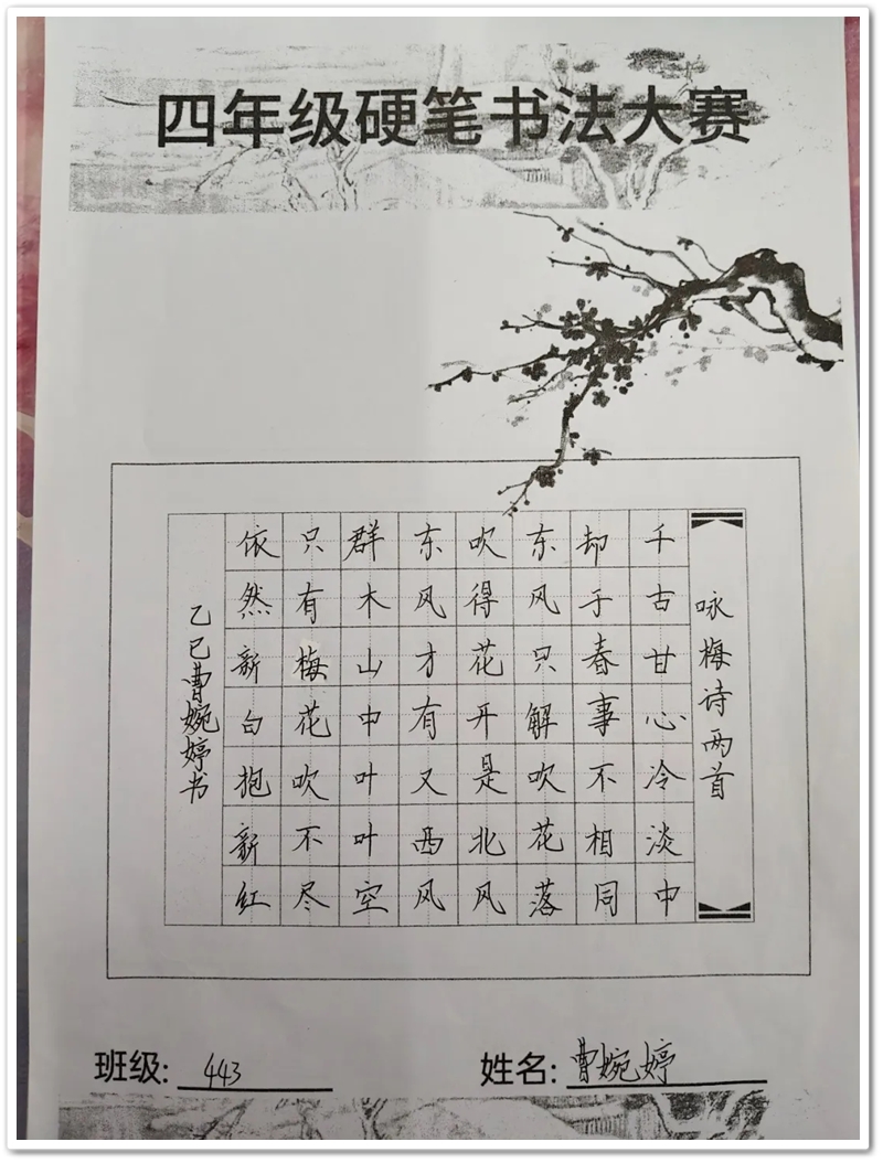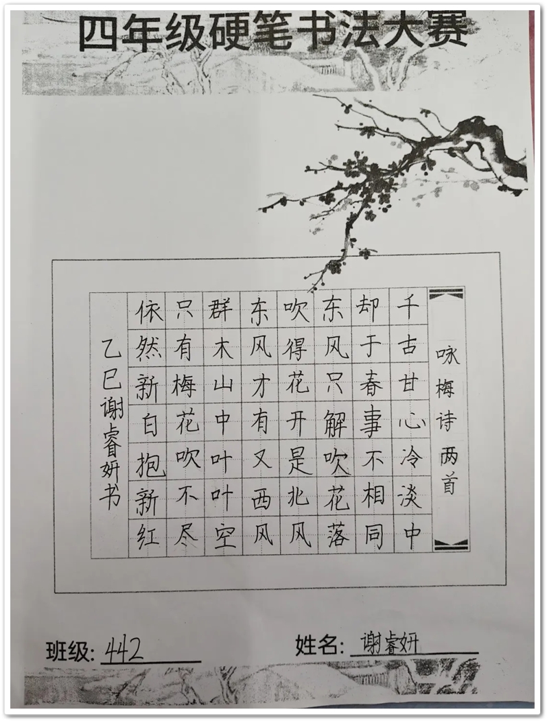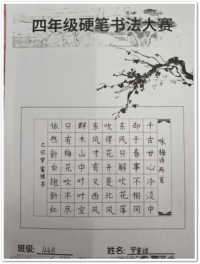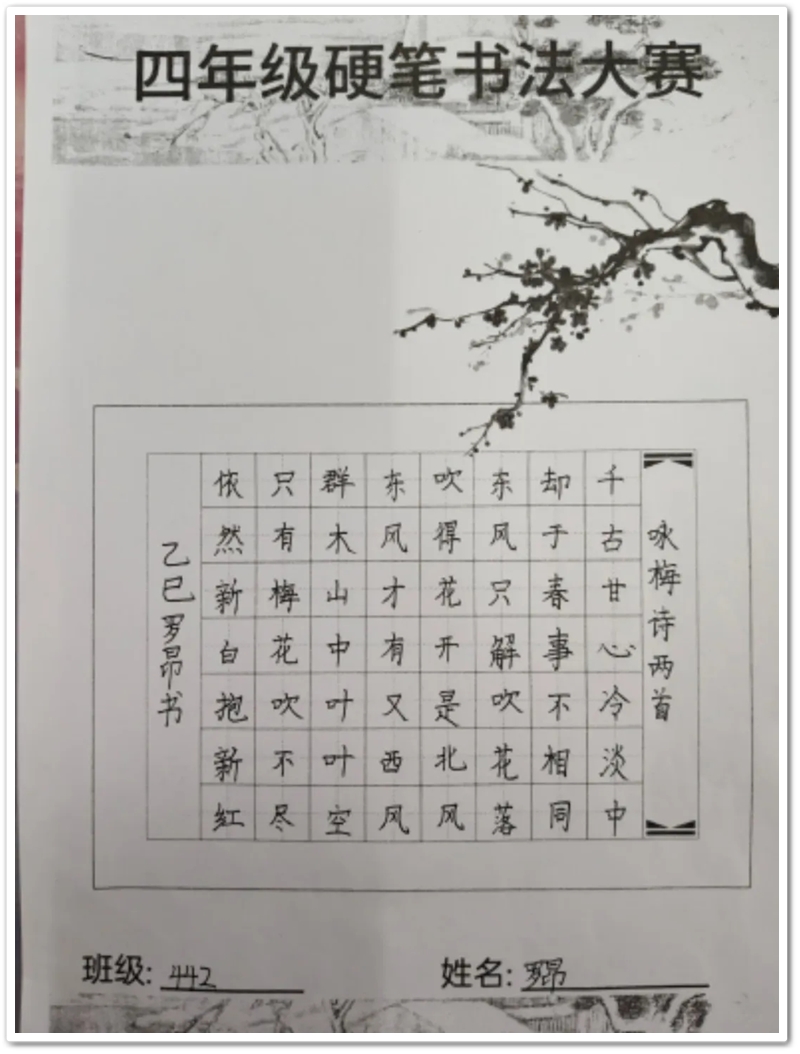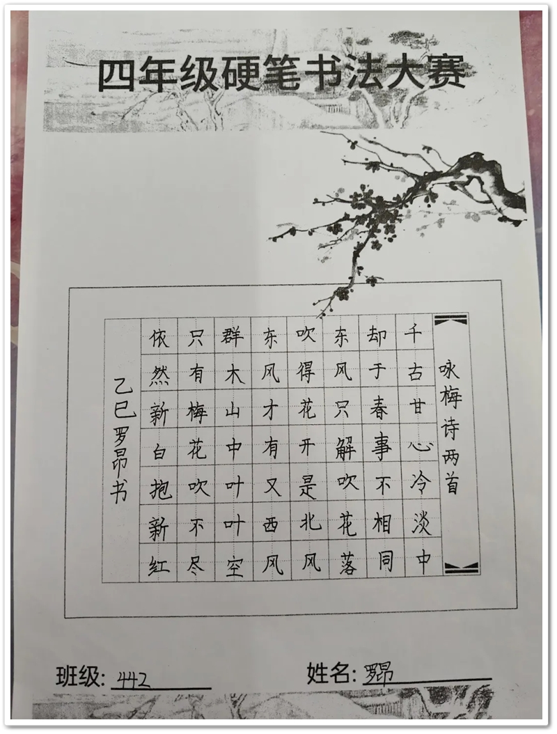 四年级硬笔书法大赛获奖名单