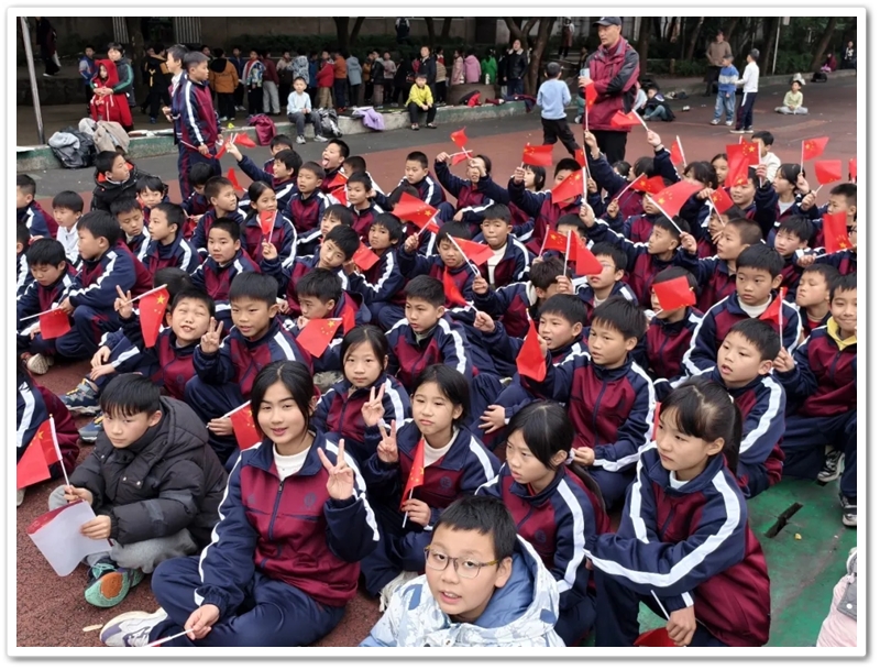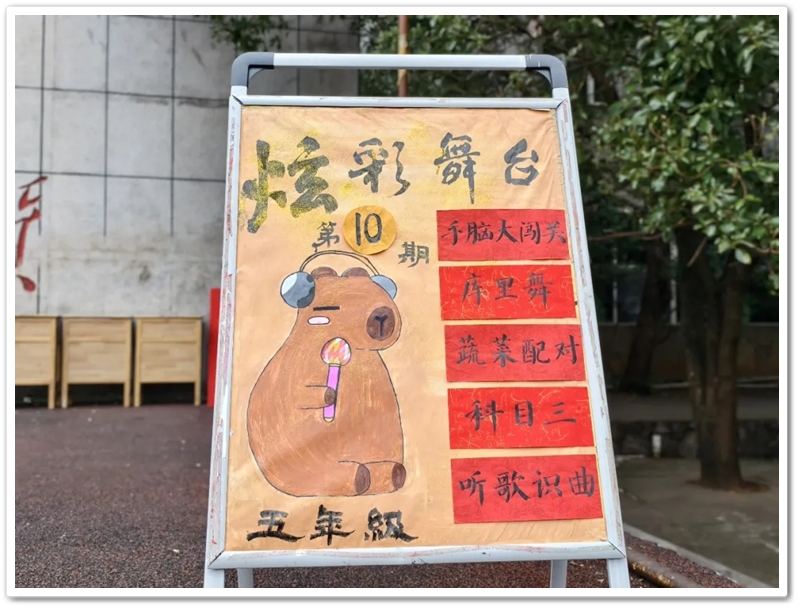 你瞧!运动场上孩子们一张张笑脸透着雀跃,双眼望着舞台边,踮脚张望、小声念叨,满心盼着表演闪亮开启。