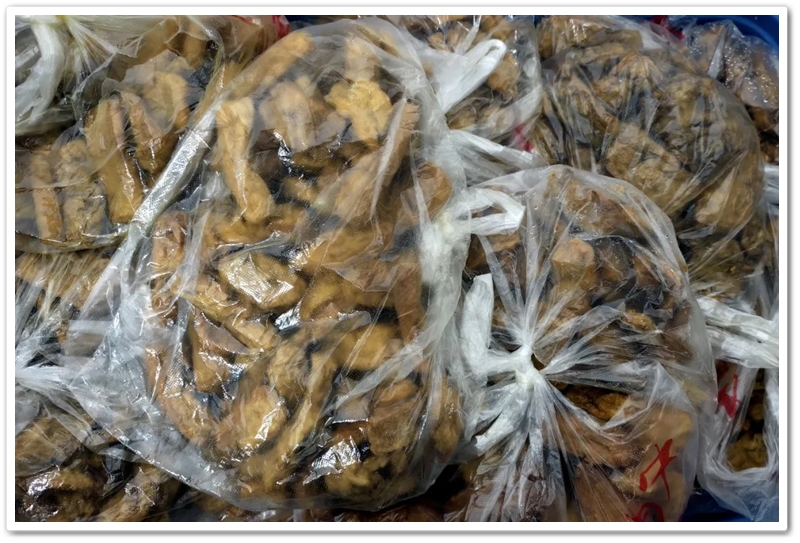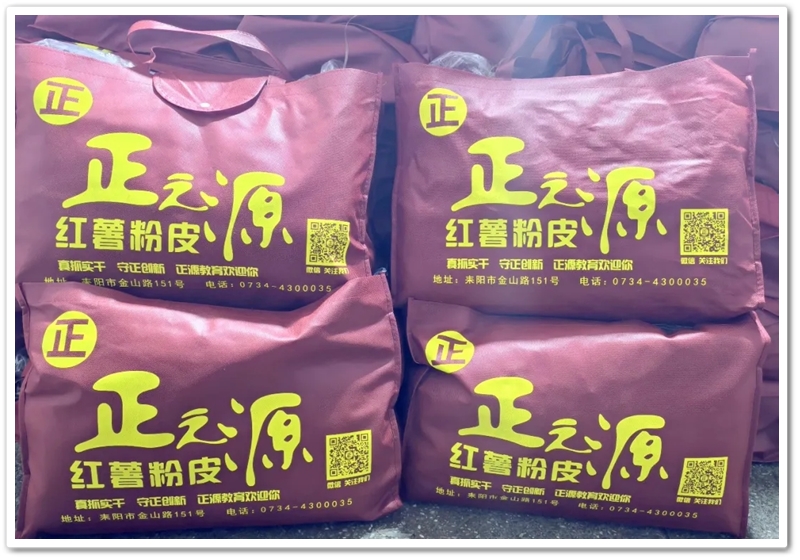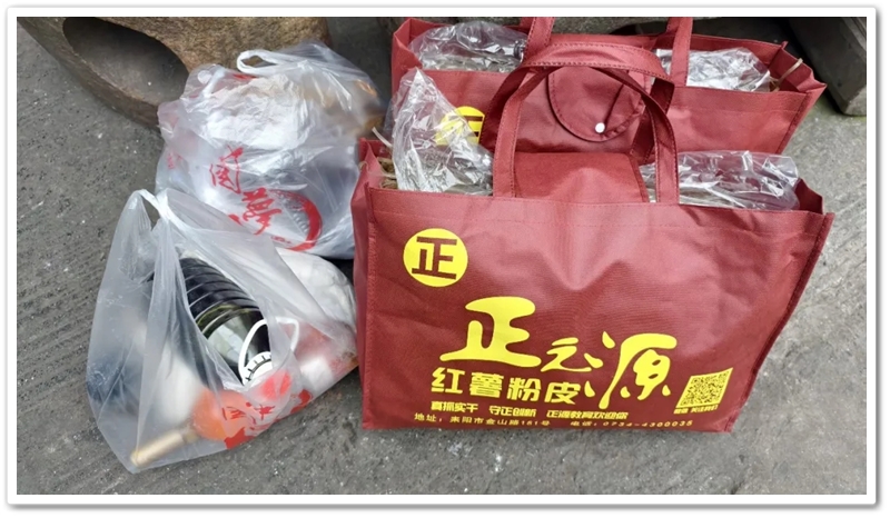 满满两大袋红薯粉皮,既占地儿又打称,拎上一段路程,铁定得把手上勒出红印子来。但是就像平日里自助打餐时一样,自助区里红薯粉皮炙手可热的程度,一点也不亚于广受欢迎的青椒炒肉。老师们都知道,正源的所有红薯粉皮,都是购买农民的红薯自己加工而成,无需担心鱼目混珠的掺杂使假,更无需担心任何食品添加剂。