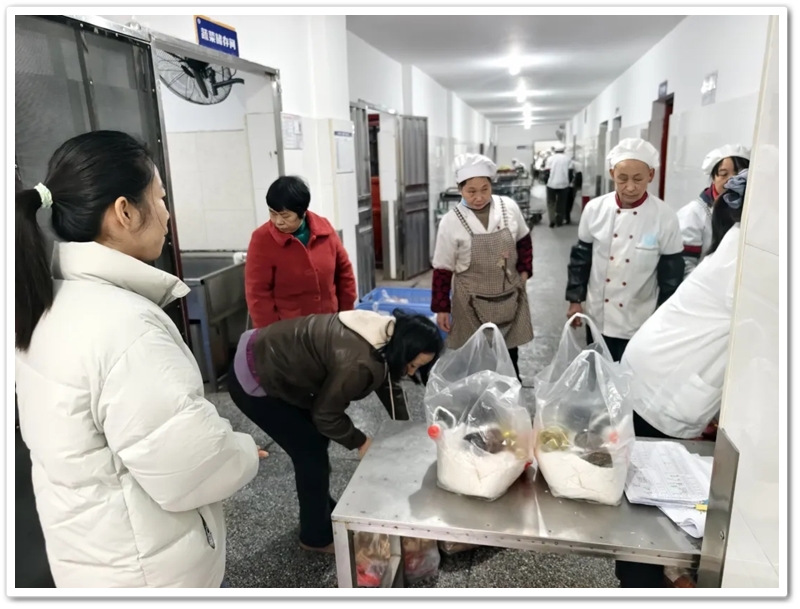 食堂里,师傅们已将首批春节年货准备妥当。