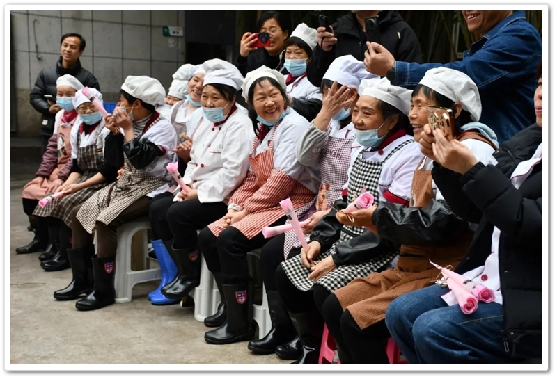 话音刚落,孩子张开双臂,扑进阿姨的怀里——小小的脑袋埋在熟悉的围裙上,软软的小手紧紧环住阿姨的腰。几位常年在窗口打饭的阿姨,一边轻轻摸着孩子们的头,一边抬手拭去眼角滑落的泪水,脸上却漾着藏不住的笑意。镜头里,一张张挂满泪痕却满是温柔的脸,一个个紧紧相拥的身影,让感恩的温度在春日里无限蔓延。