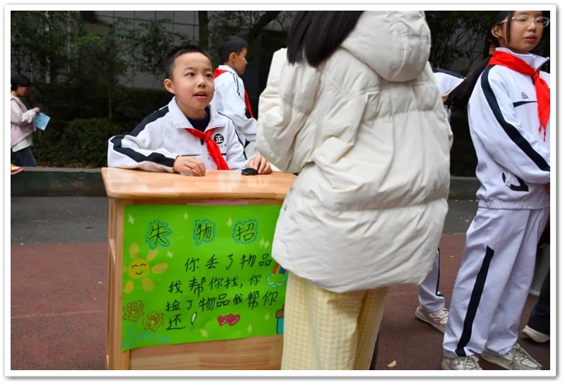 五年级的同学在操场入口还设立服务岗,实行每日轮值,将服务细化为四大板块,让关爱精准落地: