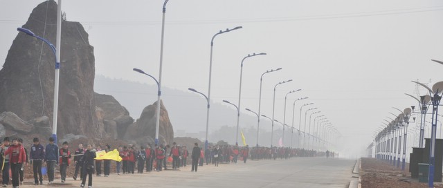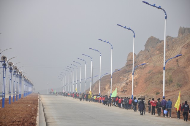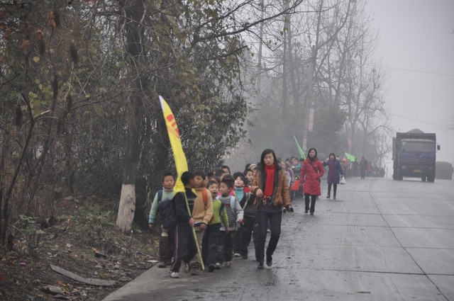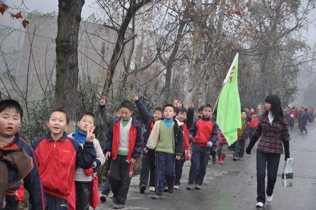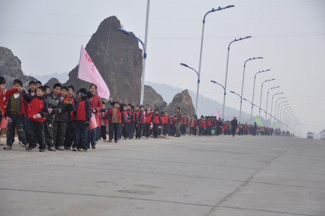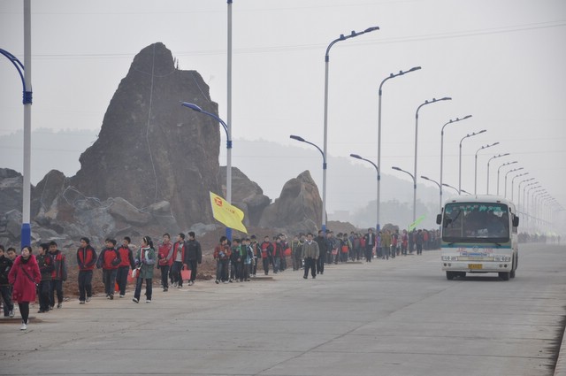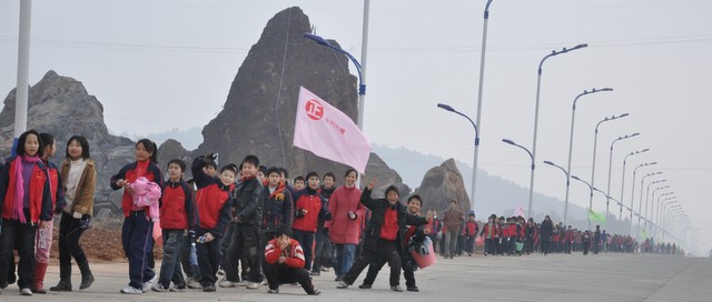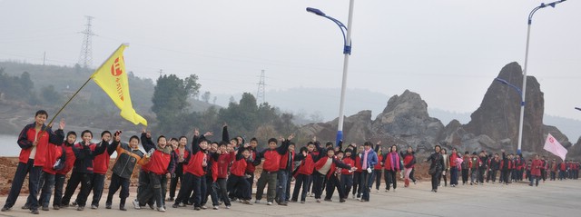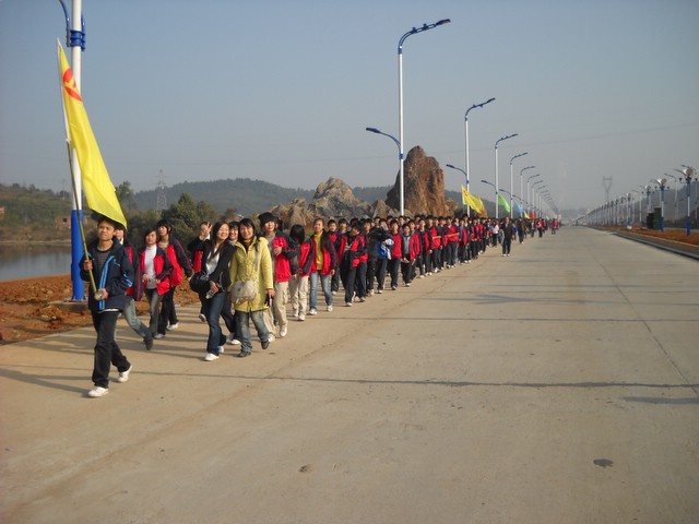 上午9时,正源学校小学部三年级以上1500多名学生在老师们的带领下,兴高采烈地走出校门,不到三小时抵达目的地。最了不起的是小学三年级6个班近300名孩子,虽然平均只有8岁多,但他们一口气用2小时50分钟走完22里路,竟然没有一个学生掉队。在参观武广耒阳新城亮丽的风光后,学生们投入到野炊活动,一边野炊,一边领略高速动车飞驰的风采。
