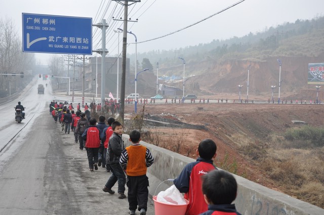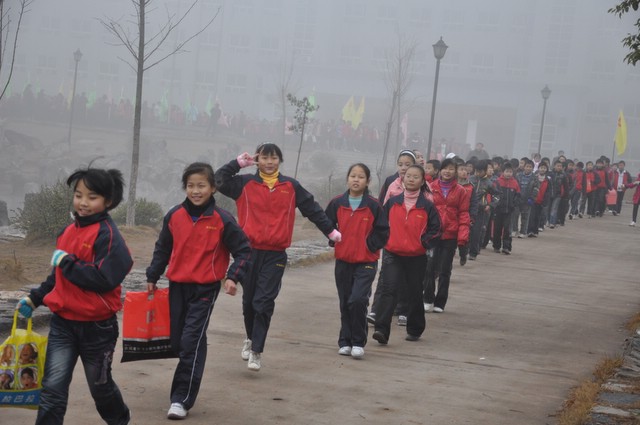 为让同学们在紧张学习之余放飞心情,也为锻炼学生们的意志,领略耒阳风采。在武广高铁开通的第三天, 12月28日,正源学校组织了全校学生去武广耒阳西站冬游。 此次冬游活动,学校安排除小学一、二年级和学前班的学生乘车往返之外,其余5000余名学生进行徒步出游,整个行程共11公里。冬游线路为:出校门后进入京珠高速联络线,步行3公里过五里牌汽车站后进入107国道,沿107国道往南步行5公里到达耒阳大道,然后前行3公里抵达耒阳西站。