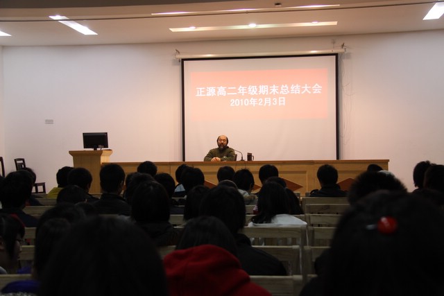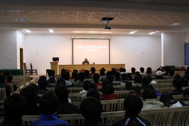 会议由年级主任江宗斌主持,江主任首先对本学期同学们取得的成绩和存在的问题做了简要回顾,接着,罗湘云校长作报告。罗校长在报告中鼓励同学们认清形势,刻苦学习,以往届优秀同学为榜样,为正源再创辉煌。最后,罗校长还热情地介绍了为高一清华班身患白血病的唐飞同学捐款的情况,号召大家踊跃捐款。